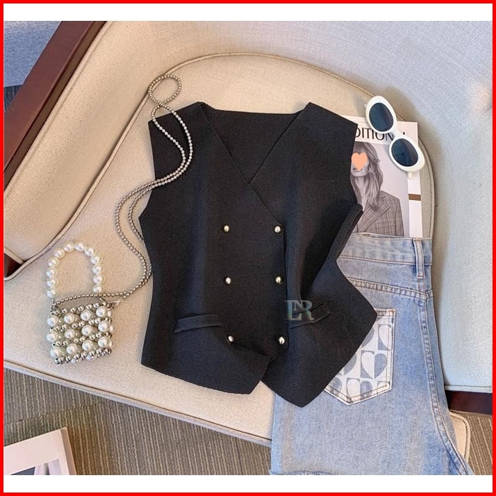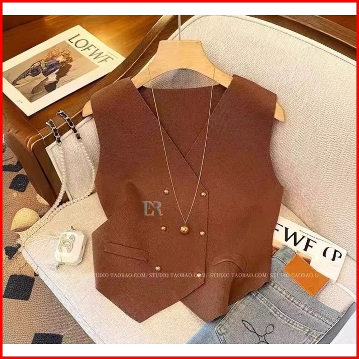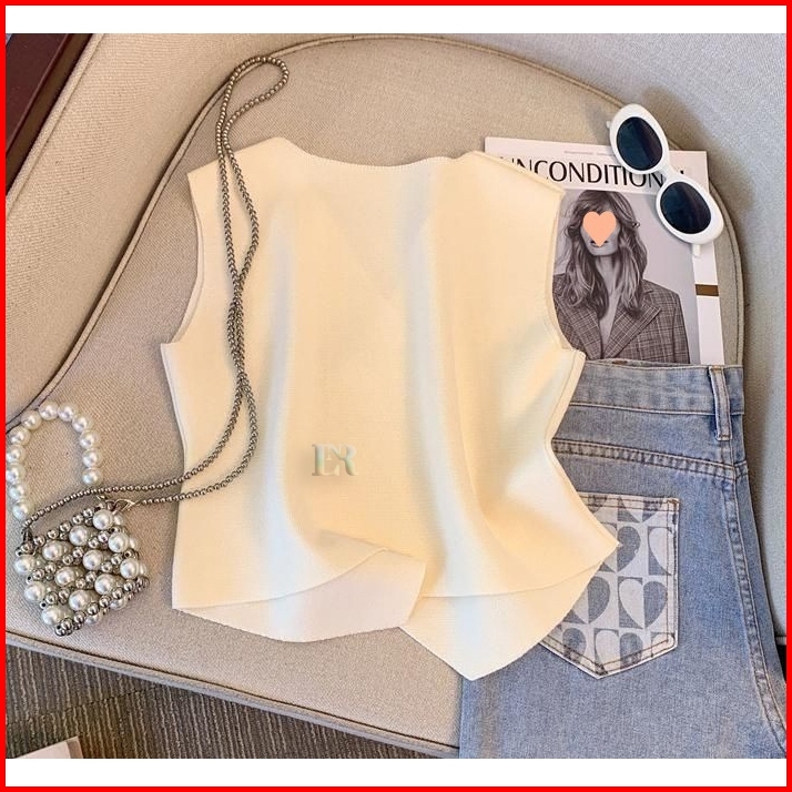 Lnr Shop Atasan Vest Rompi Rajut Full Kancing Bahan Halus Lembut Untuk Perempuan Tanpa Lengan Import Basic Elegant Kaos