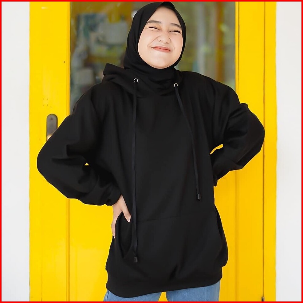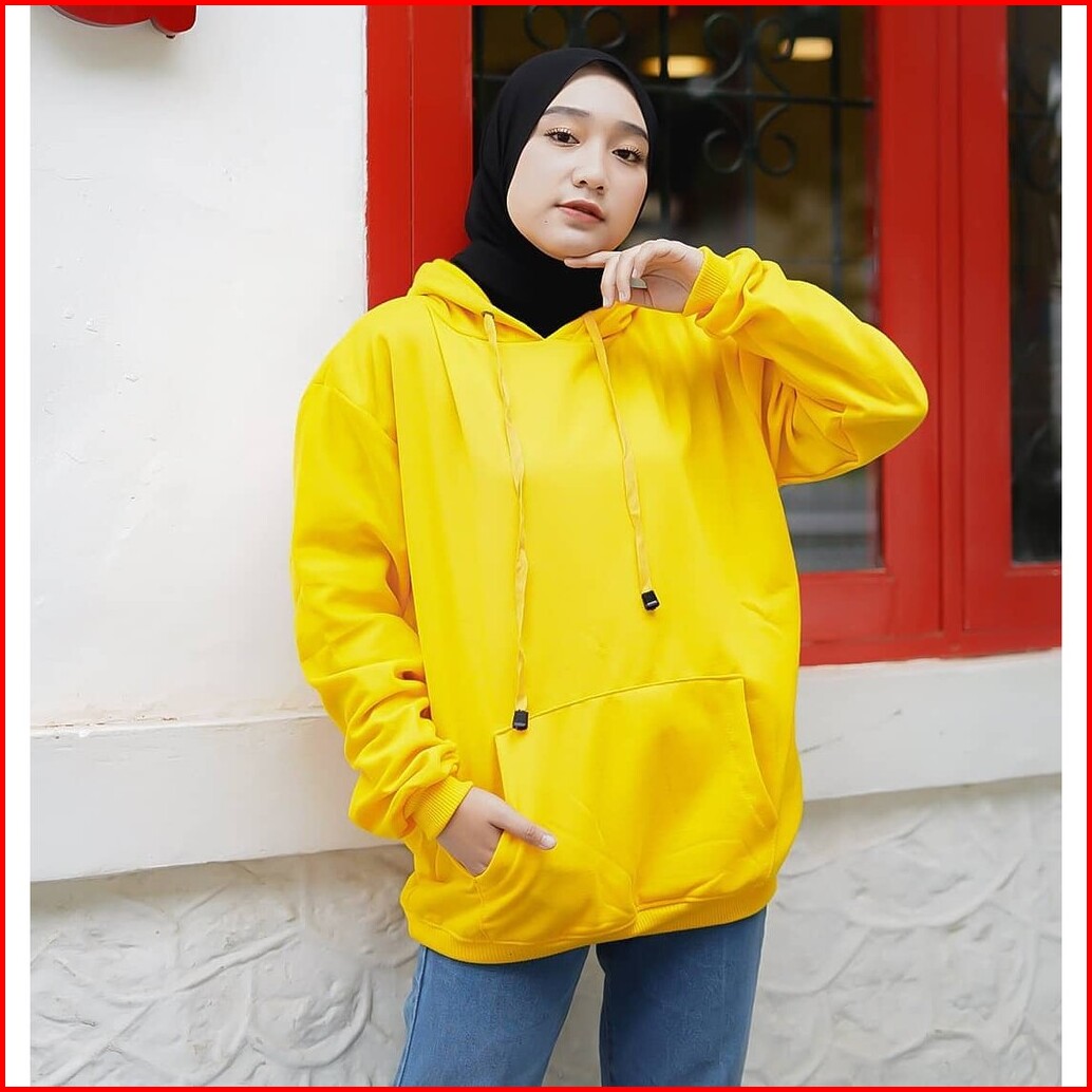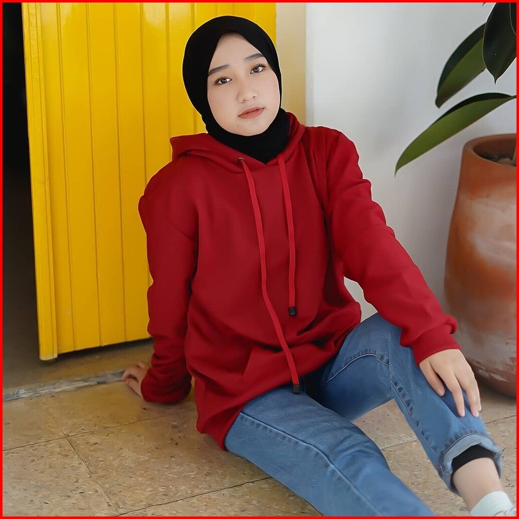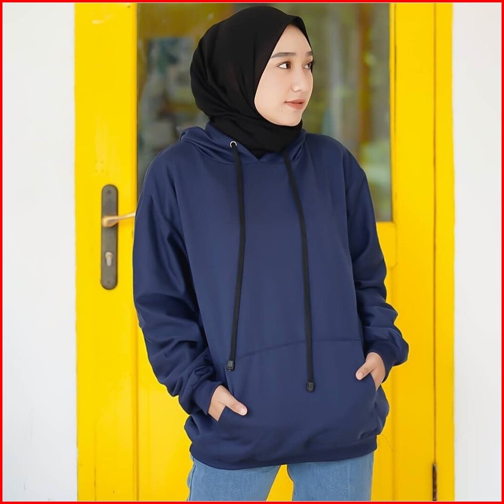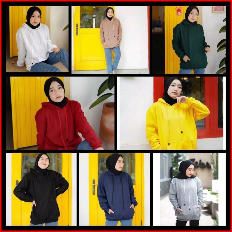 Hoodie Polos Cewe Bigsize Sweater Polos Murah Kekinian Fit L
