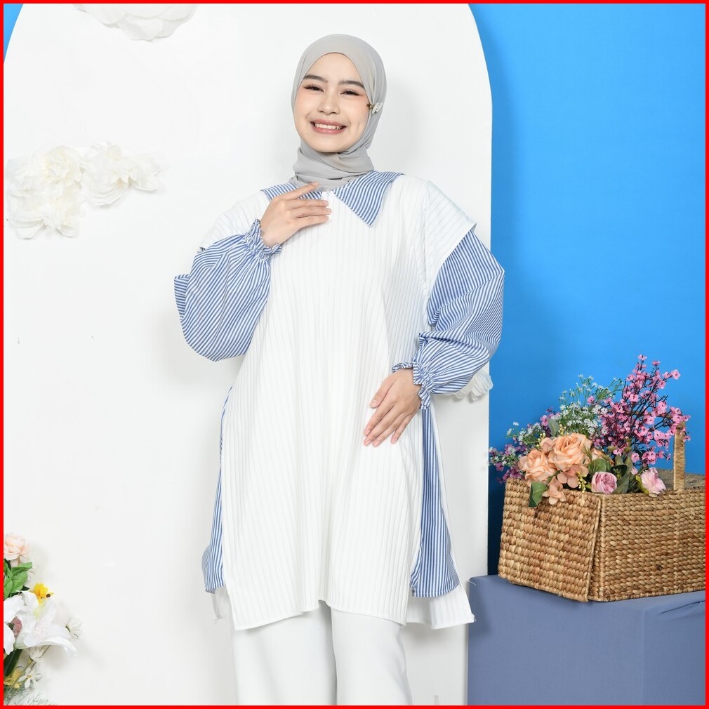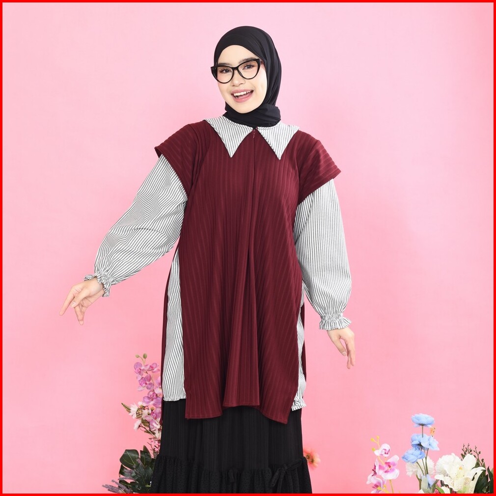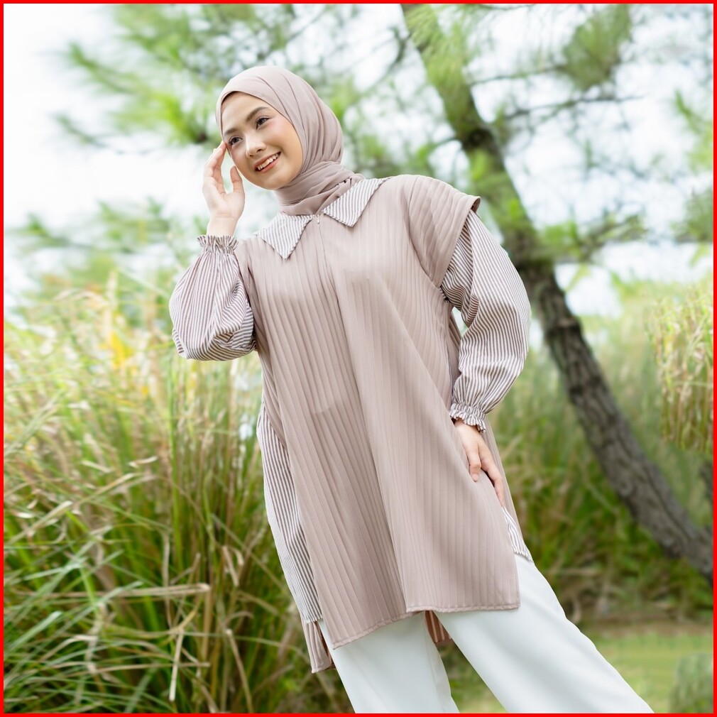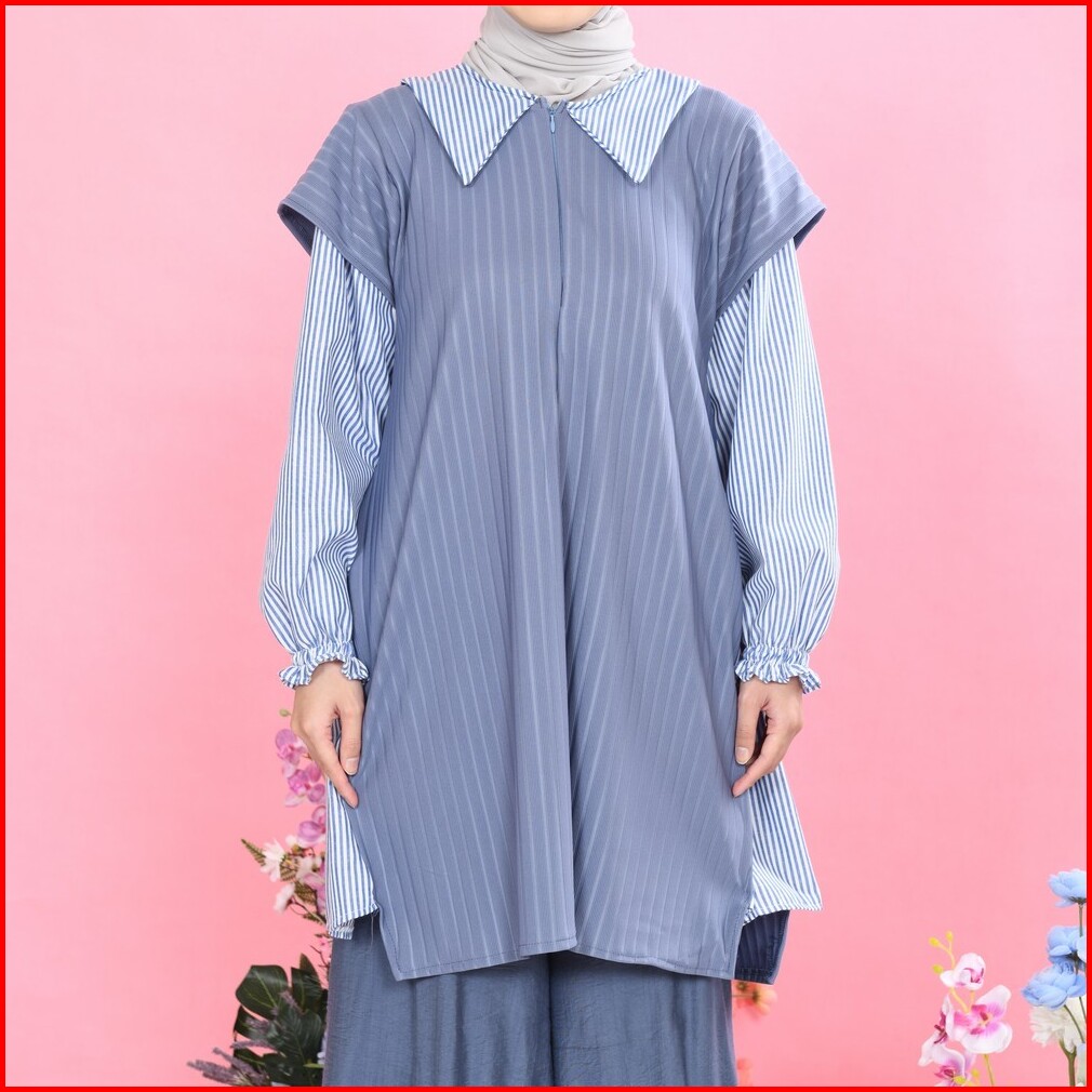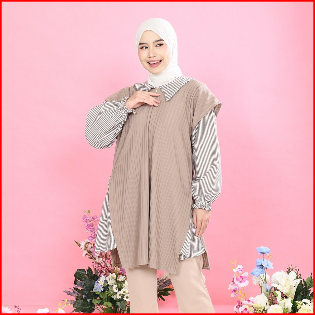 Mybamus Puspa Two In One Tunic Atasan Muslim Wanita Lengan Panjang Tunik Lebaran 2025