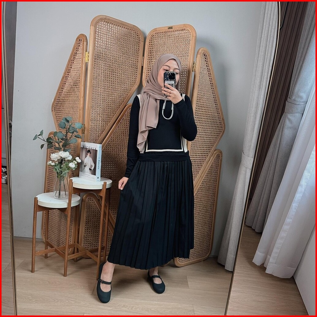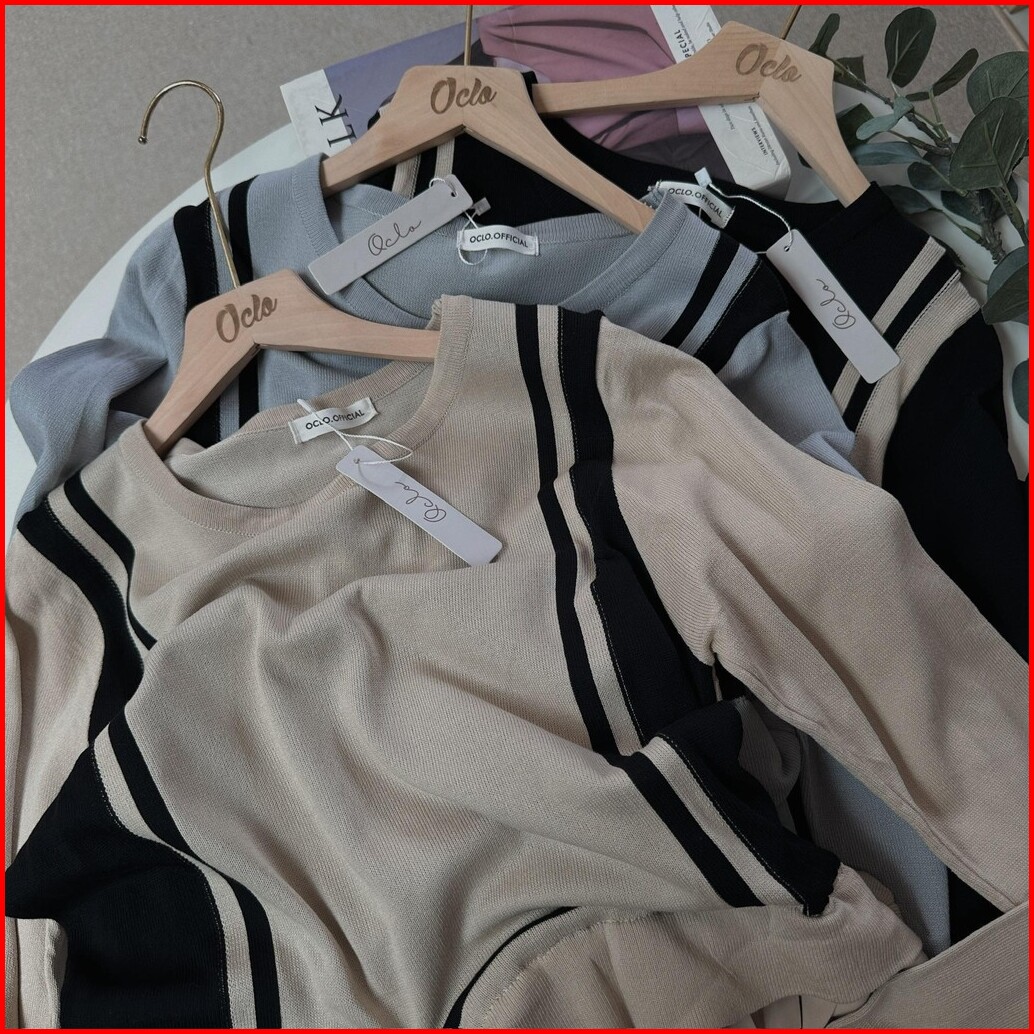Oclo Lacasa Tunic Pakaian Wanita Kombinasi Knit Katun Premium Casual Basic Dailywear Ocl00860
