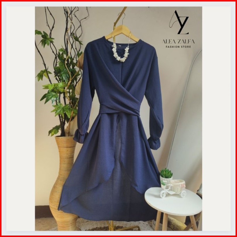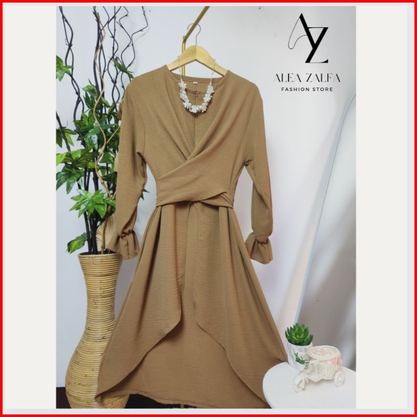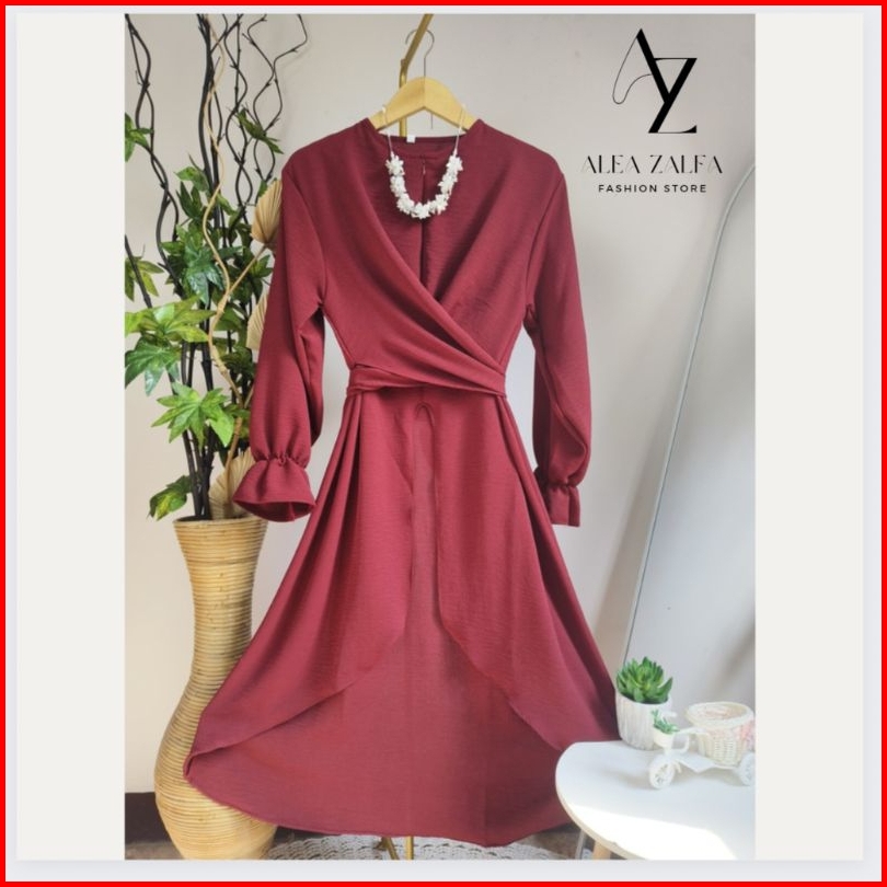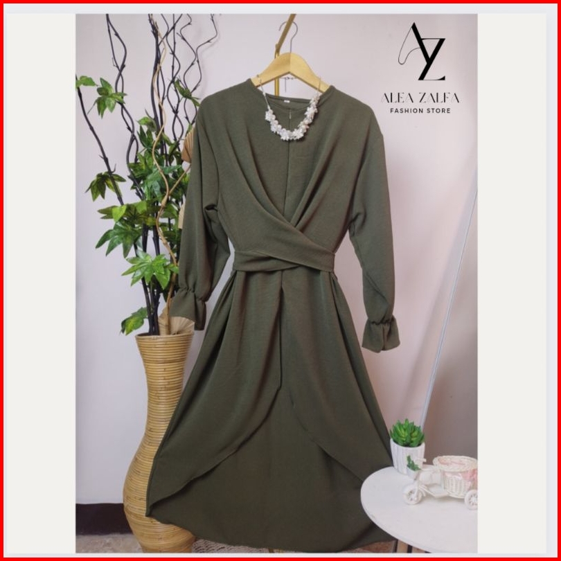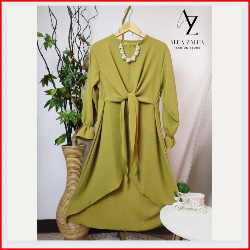 Long Tunik Wanita Aksen Tali Crinkle Elena Tunik Wanita Korean Style Aksen Sleting
