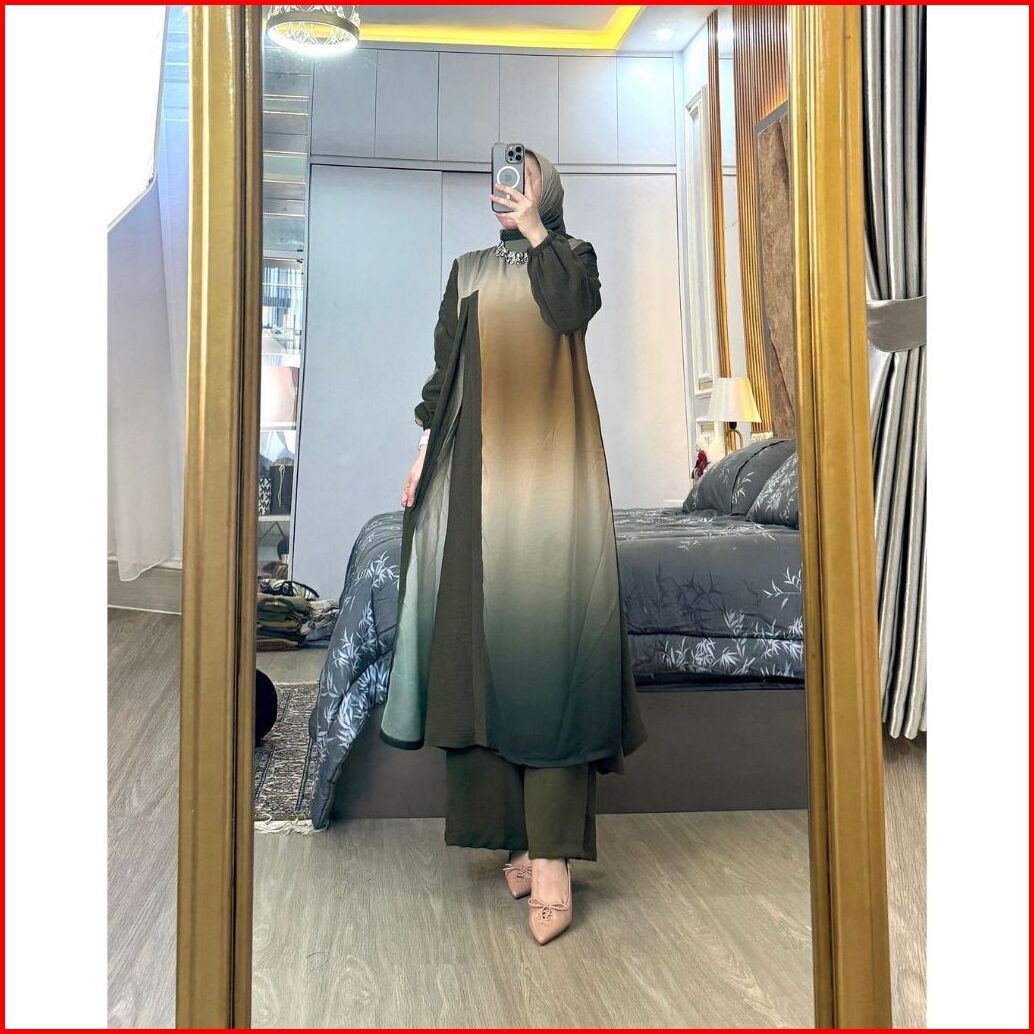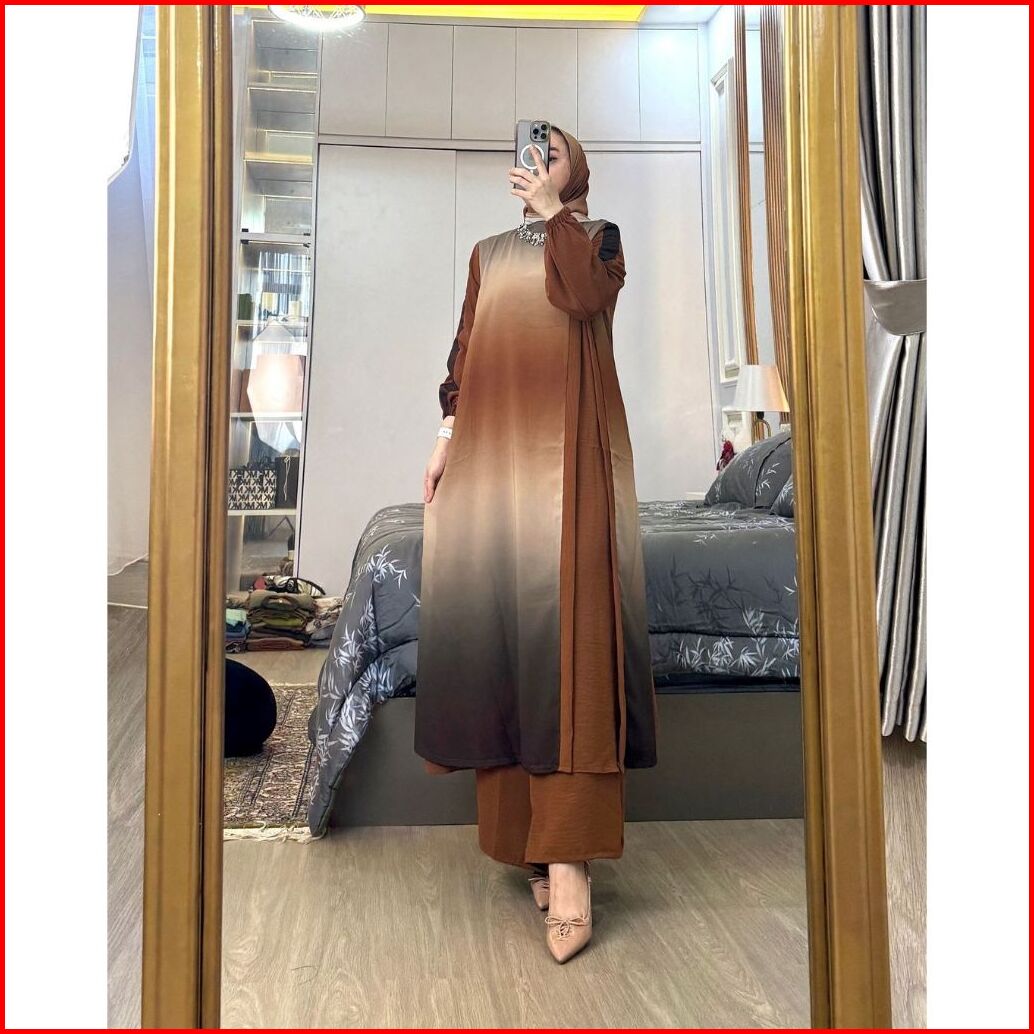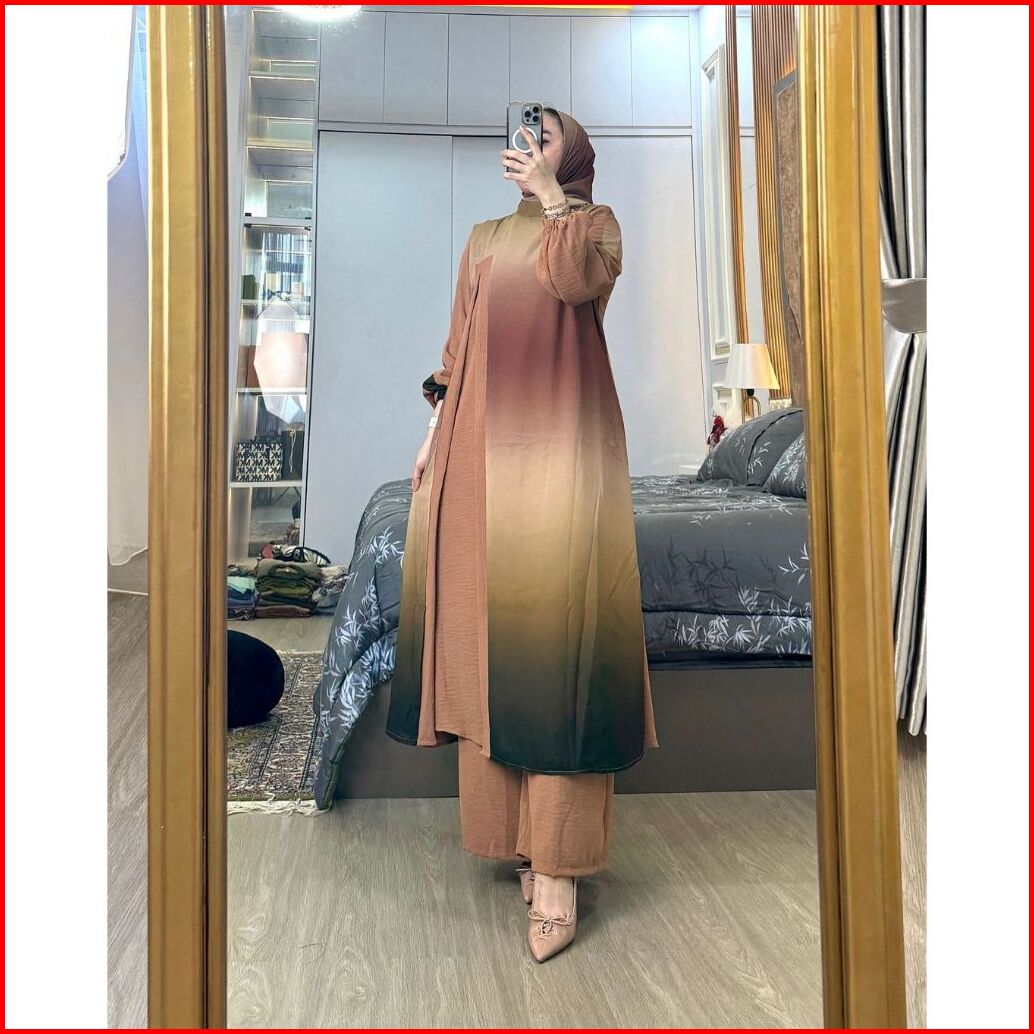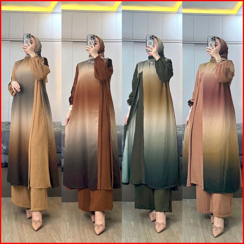 Set Hijab Tunik Panjang Gradasi Shanum Oneset Long Tunik Crinkel Wanita Setelan Wanita Jumbo Oneset Tunik Busui Setelan