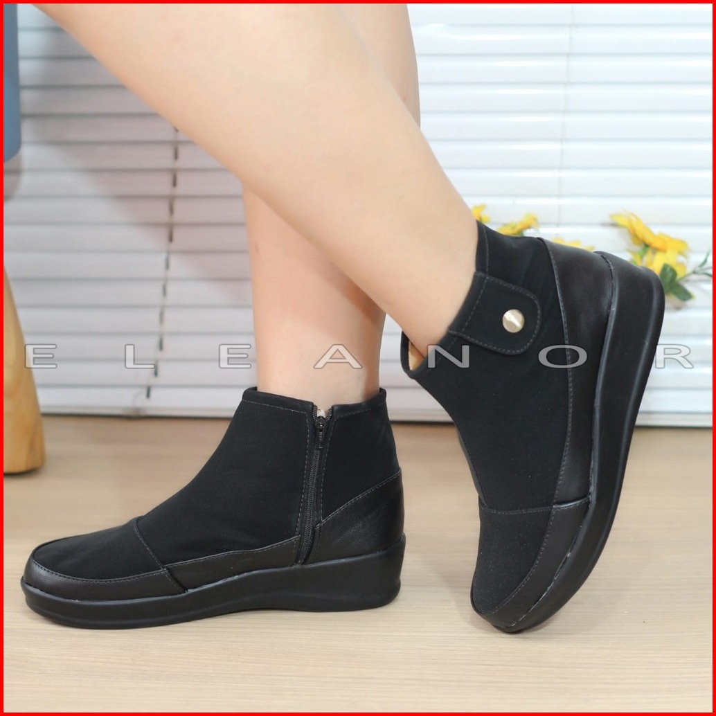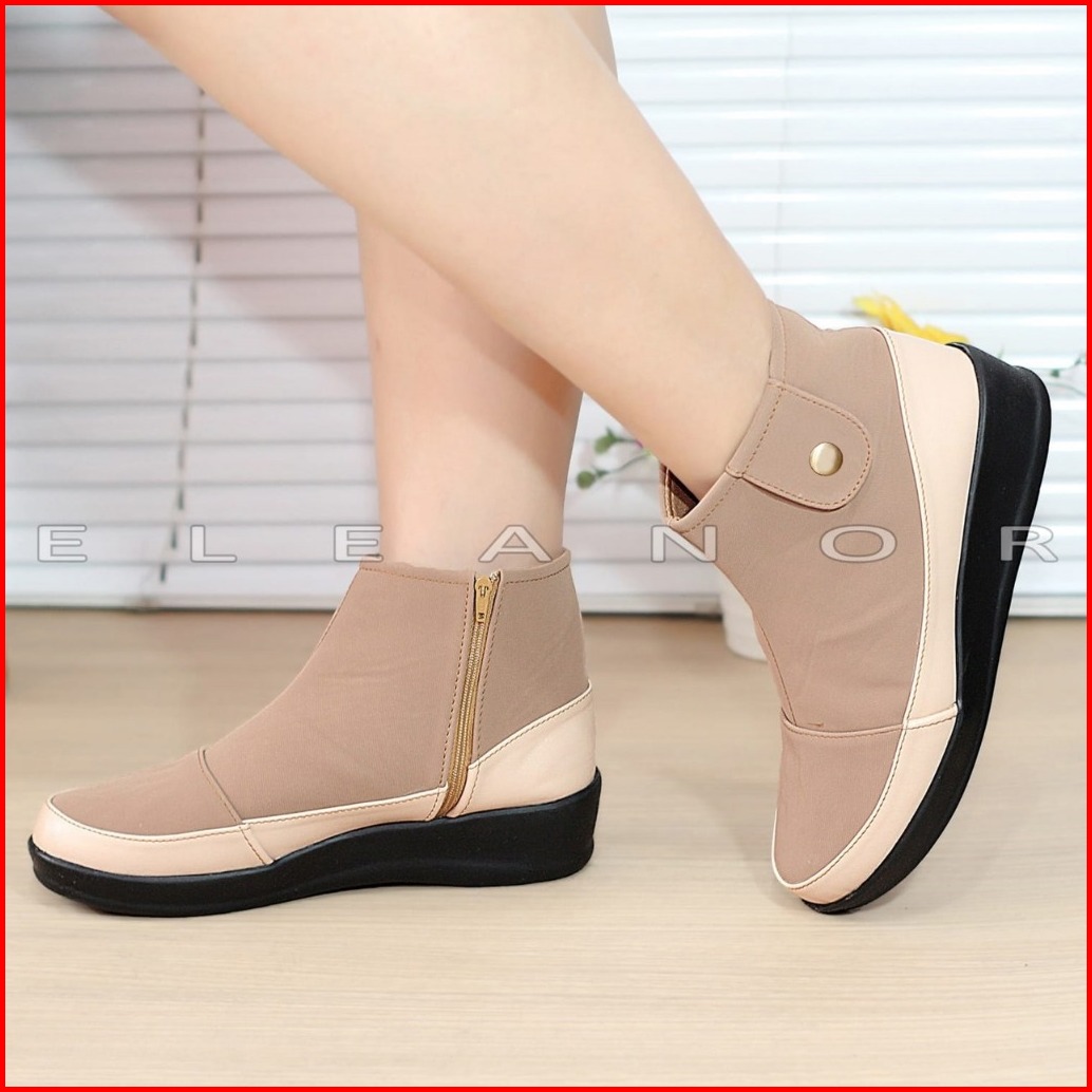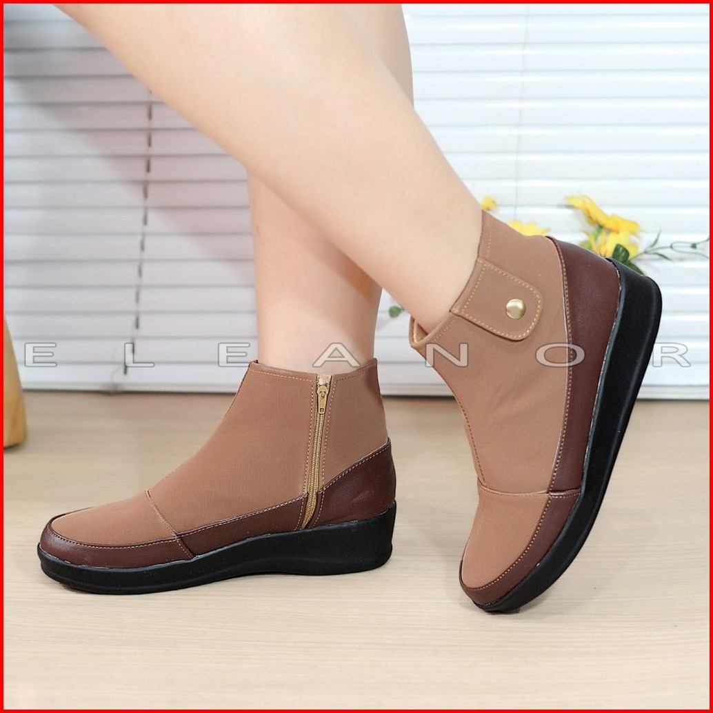 Eleanor Boots Wanita Wedges 5cm Bo14 Seleting - Coklat Cream Hitam