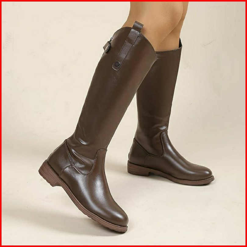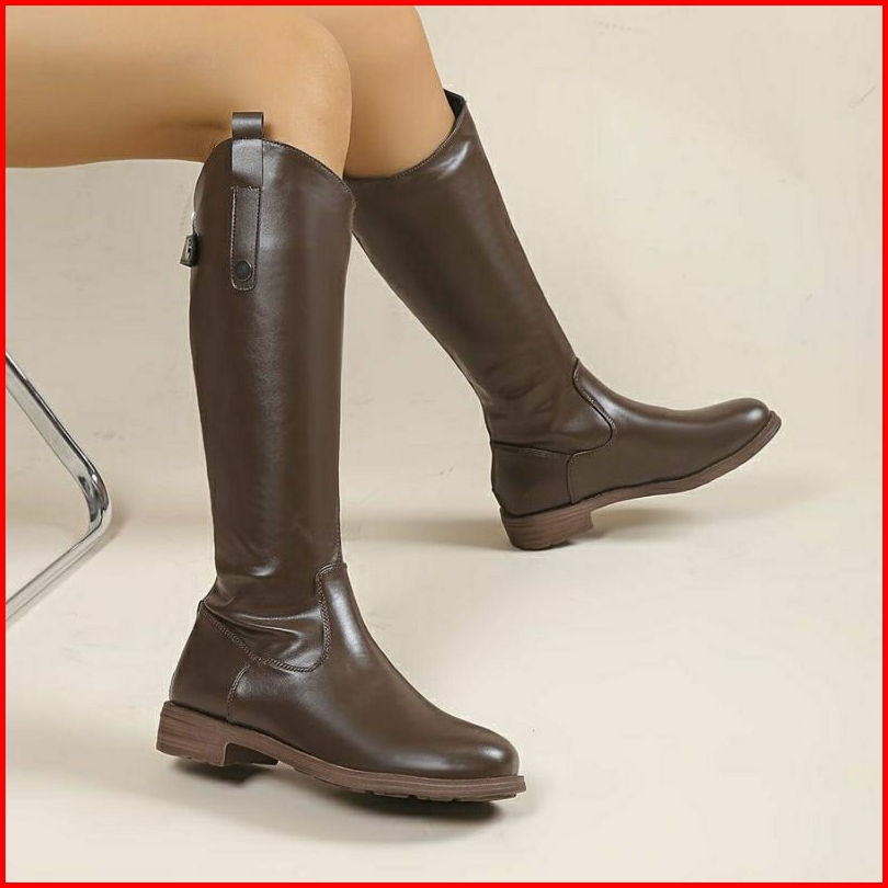 Sneakersboots.id Sepatu Long Boots Kulit Hak Platform Wanita Warna Coklat Jumbo B73 - 36-42