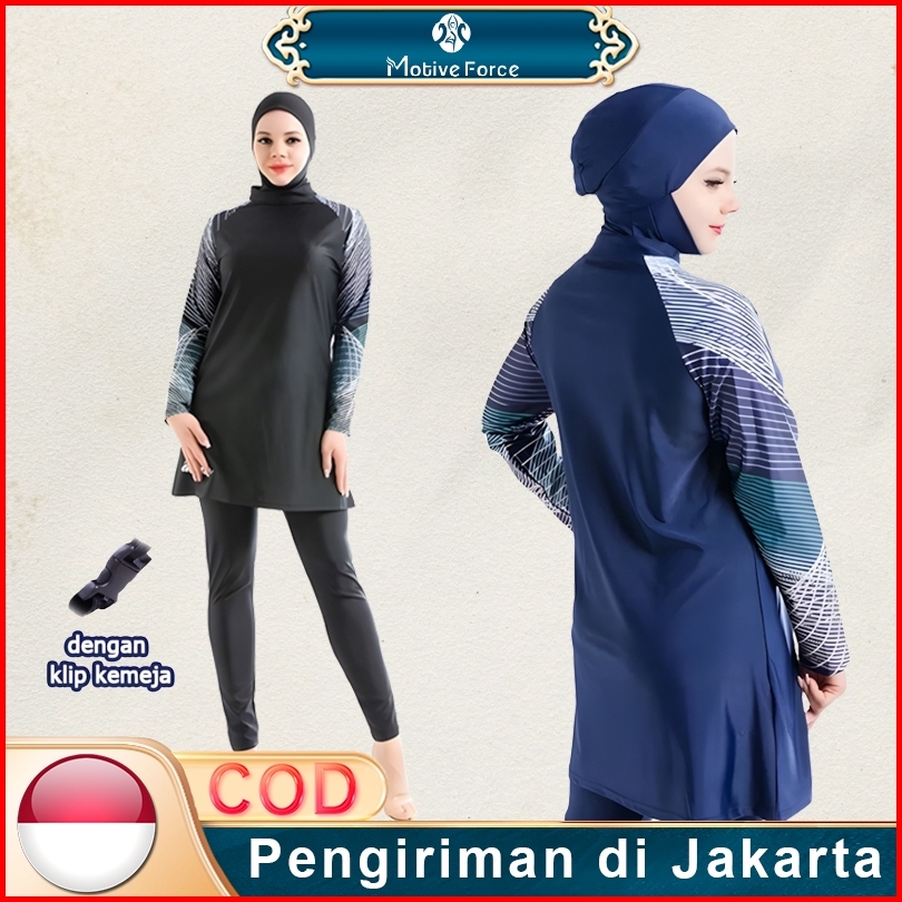 Motive Force 3 Pcs Set Plus Ukuran M-6xl Setelan Renang Muslimah Dewasa Pakaian Renang Perempuan Muslim