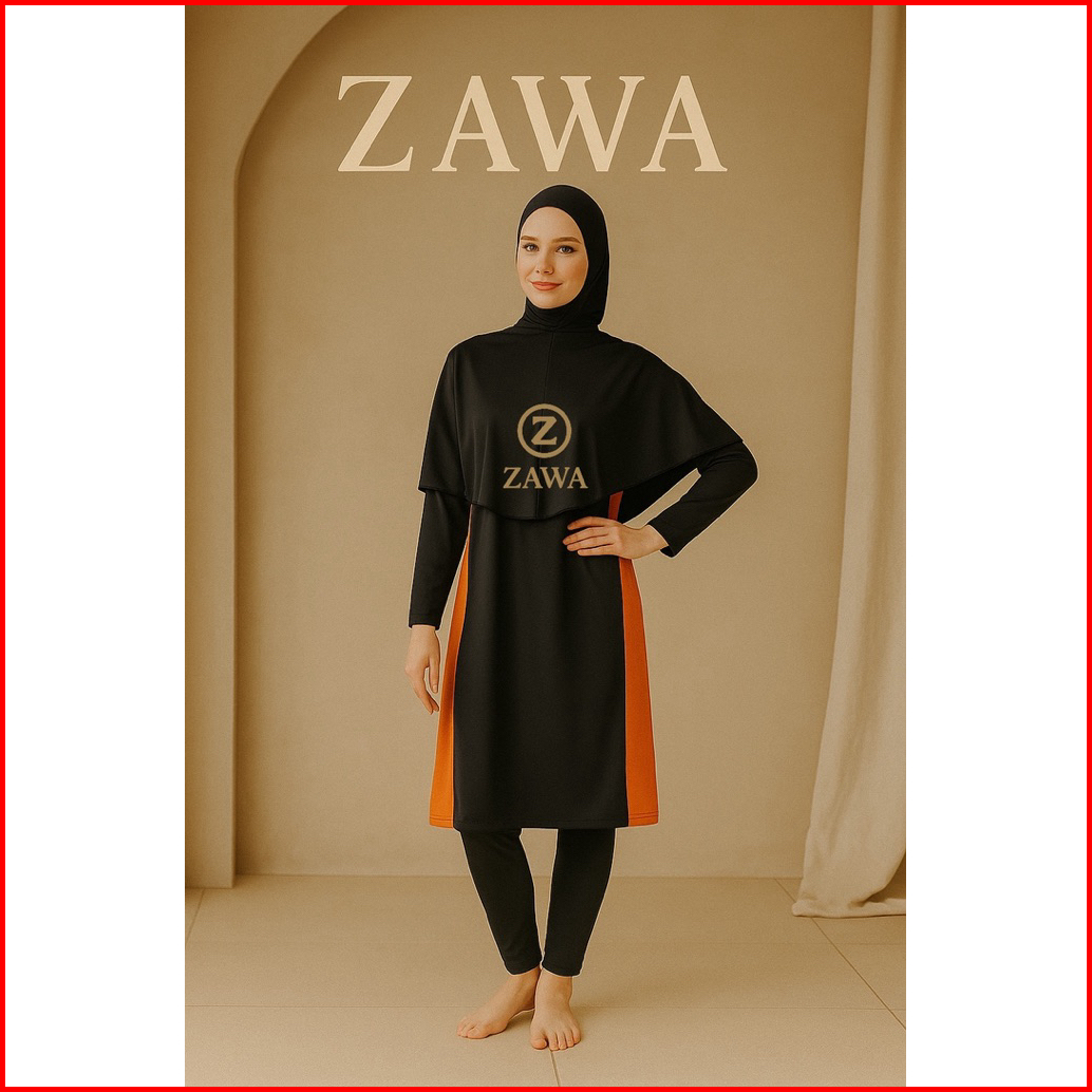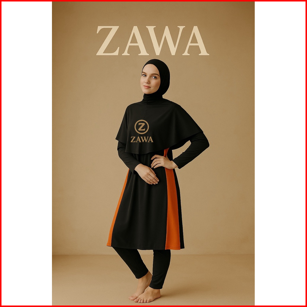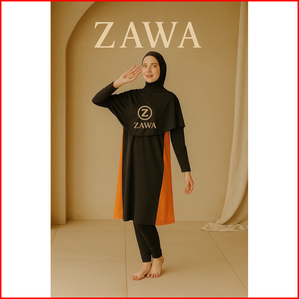Zawa Tunis Kurta Muslimah Swimwear Black Orange - Baju Renang Muslimah Hijab Syari Sporty Remaja Perempuan