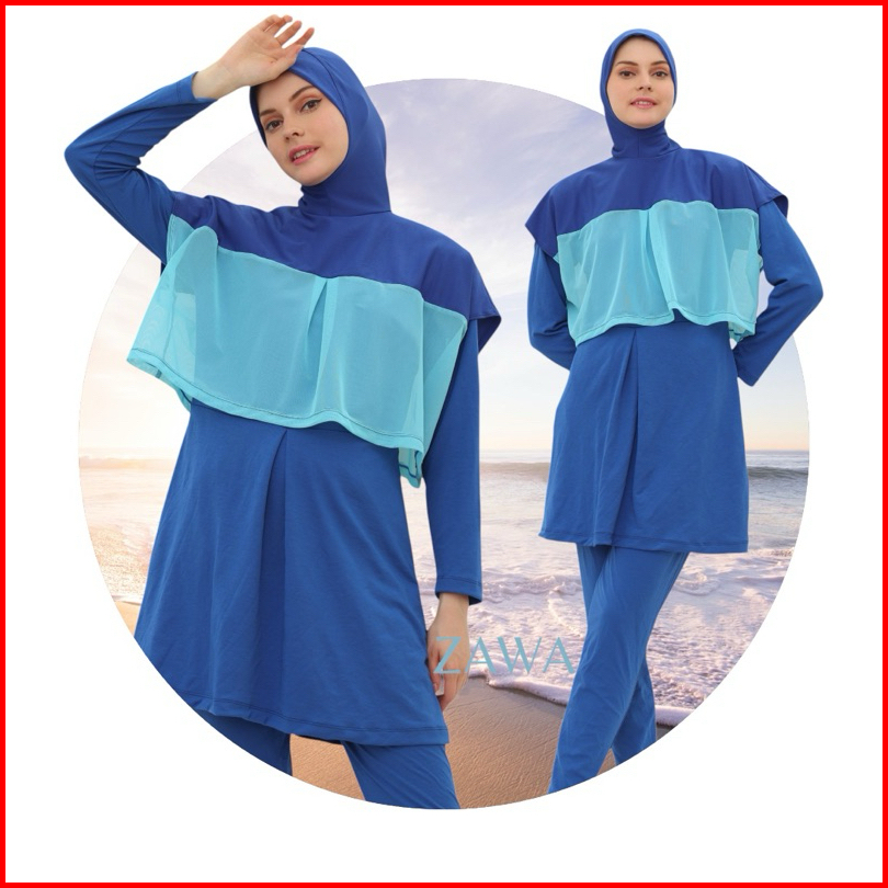 Damla Sport Muslimah Swimwear Tulle Blue - Baju Renang Wanita Hijab Syari Remaja
