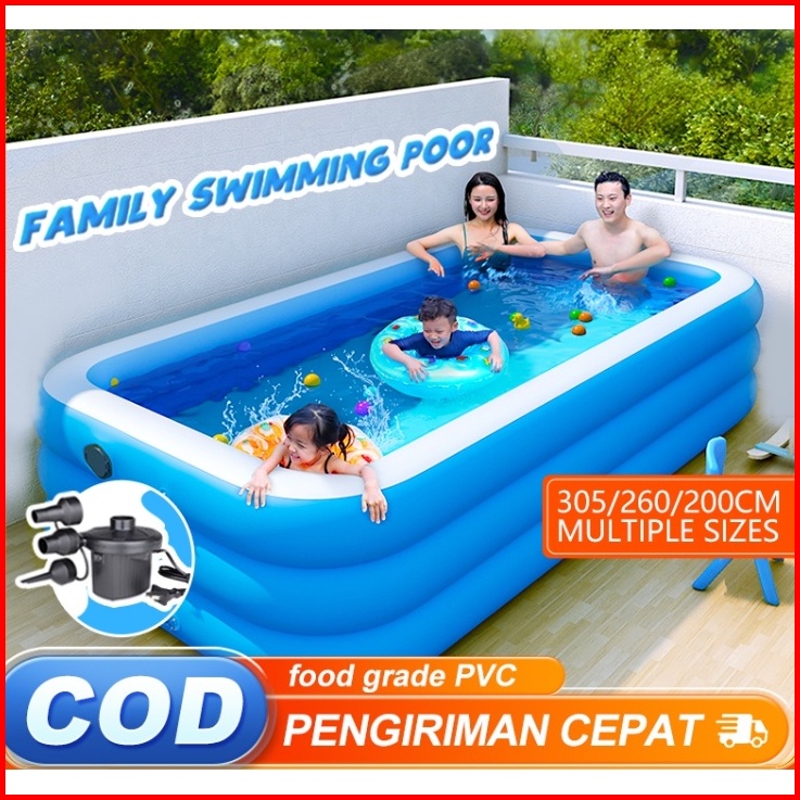 Ready Stock Kolam Renang Anak Ukuran Jumbo 2 Dan 3 Rings Kolam Renang Keluarga Tiup Besar Family Inflatable Swimming Poo