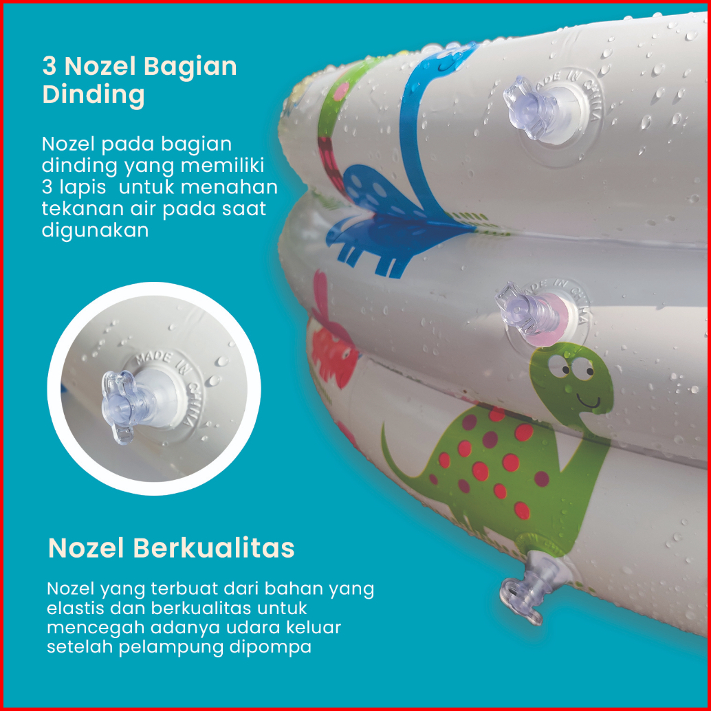 Kolam Renang Anak Pompa Angin Tiup Motif Dinosaurus Round Inflatable Swimming Pool Baby Gofunshop