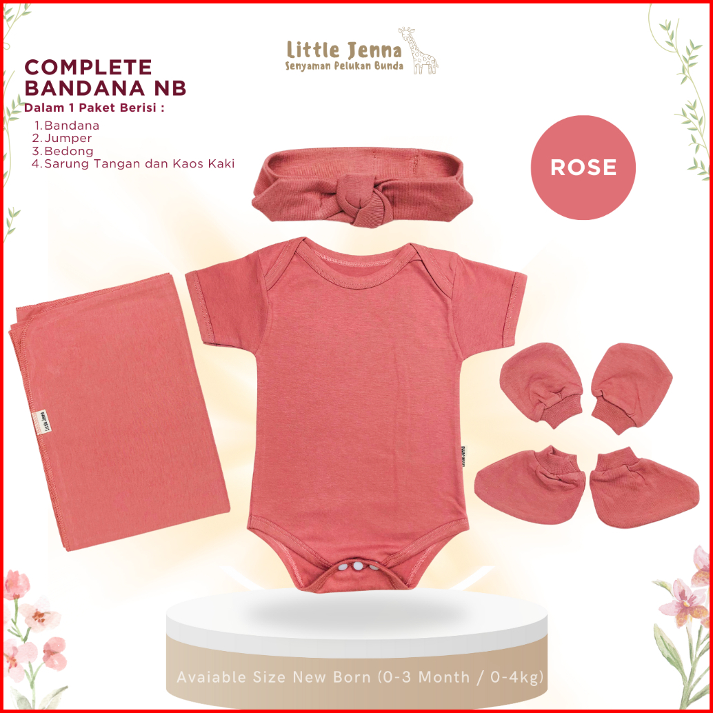 Little Jenna - Setelan Complete Bandana Bayi New Born Jumper Bandana Sarung Tangan Kaki Bedong