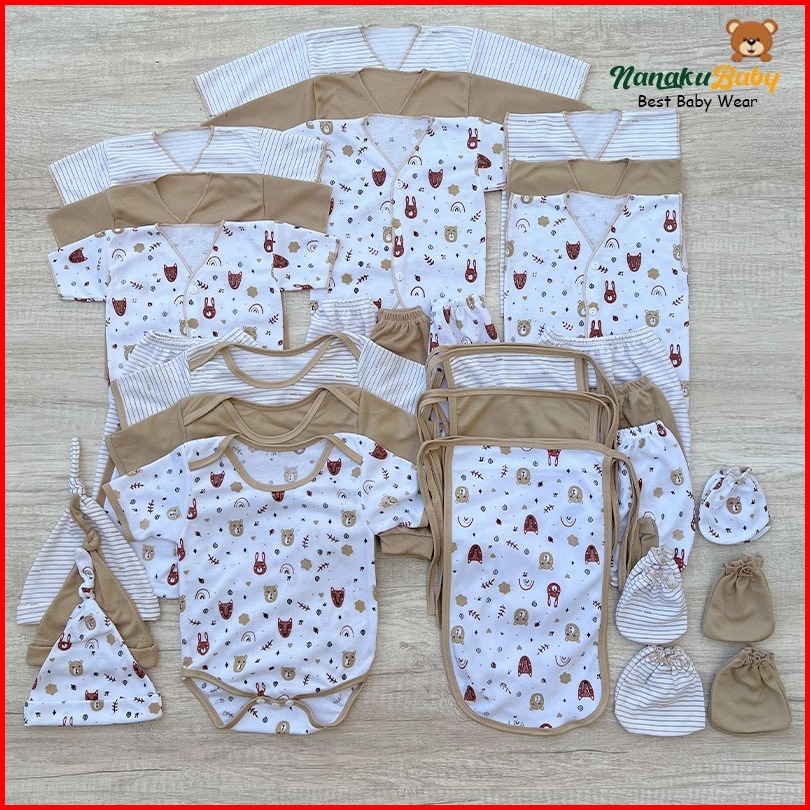 Nanaku Baby - Set Paket Printilan Lengkap Isi 36 Pcs Full Set Baby Newborn Usia 0-3 Bulan Series Mocca