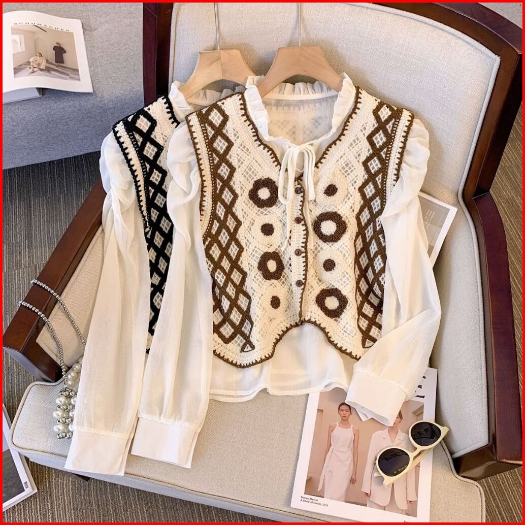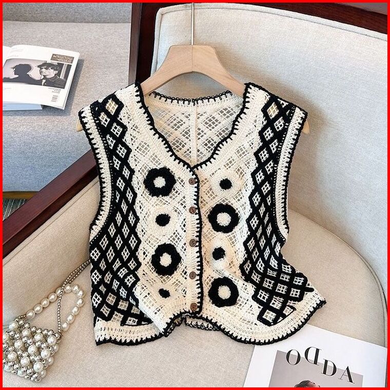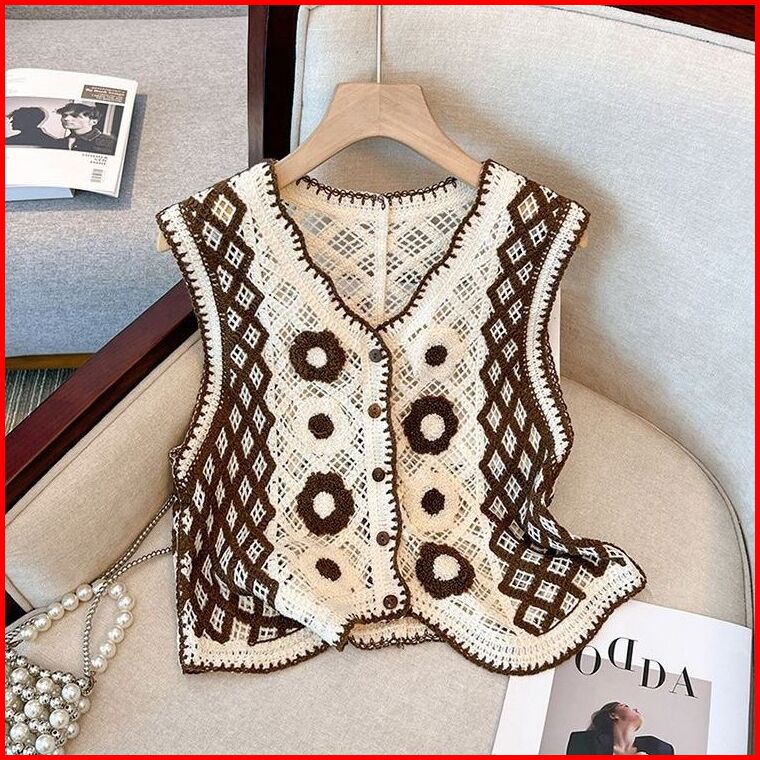 Rompi Rajut Bunga2 Vest Wanita Retro Premium