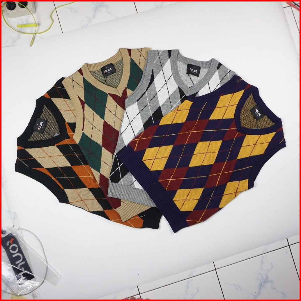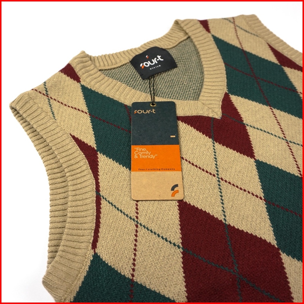 Diamond Vest Rompi Diamond Knitwear Vest Pria Panjang Rajut Beige Premium Pria Wanita Vest Rompi Rajut Outter Tenun Pria