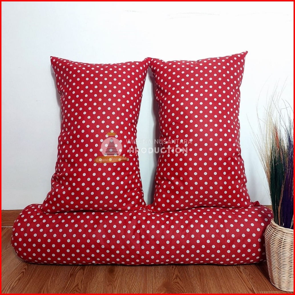 Paket Hemat 2 Bantal 1 Guling Polkadot Bantal Guling Tidur Dewasa Empuk