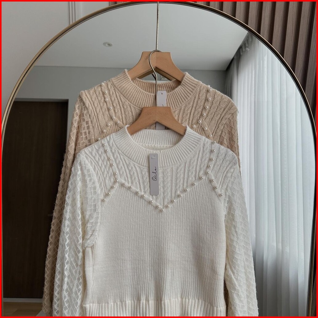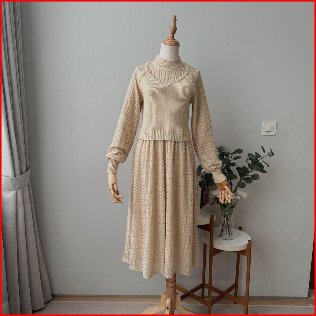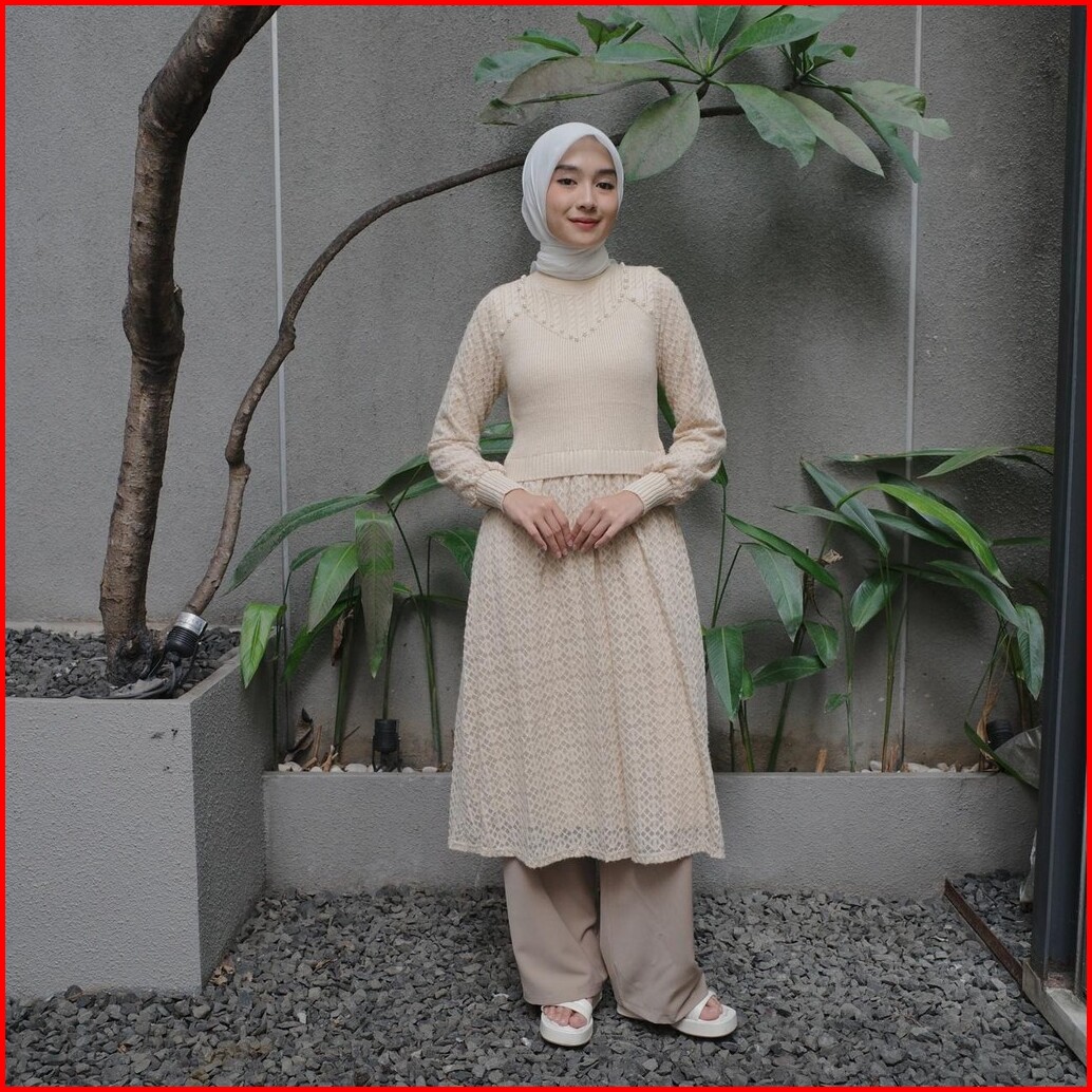 Oclo Laravin Tunic Casual Basic Atasan Tunik Wanita Rajut Manik Lengan Panjang Terbaru Ocl00940