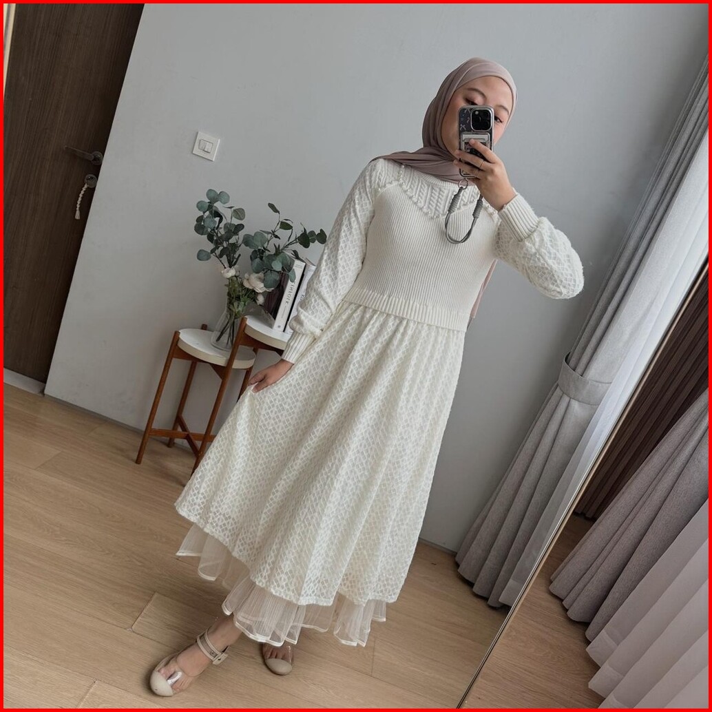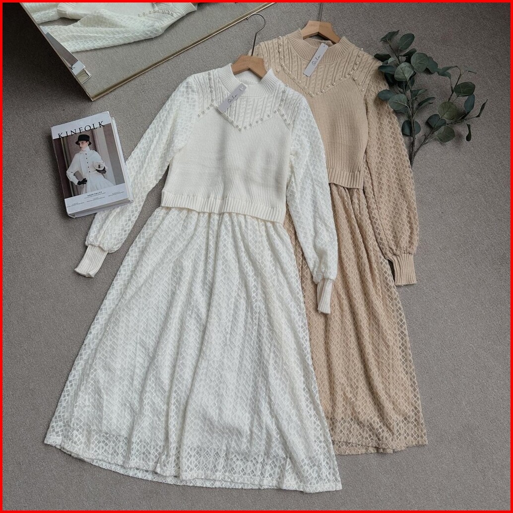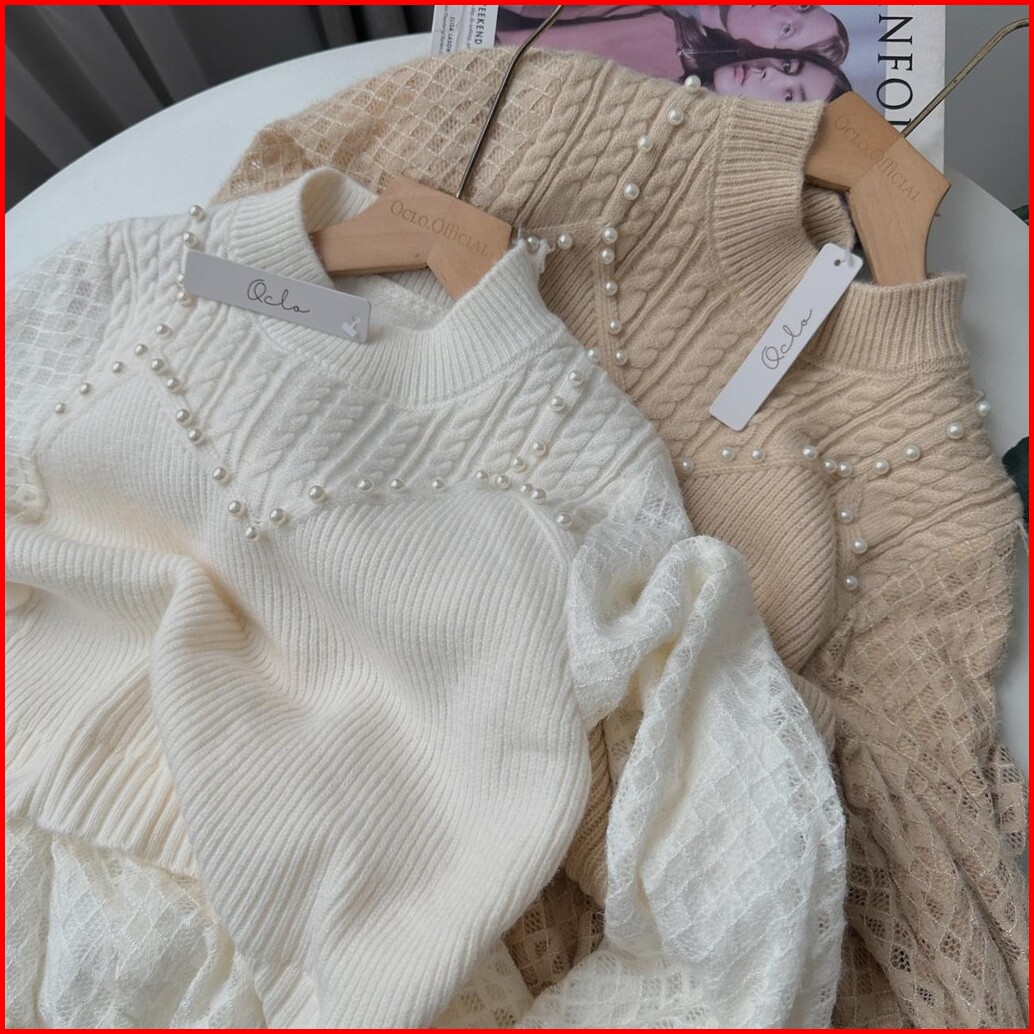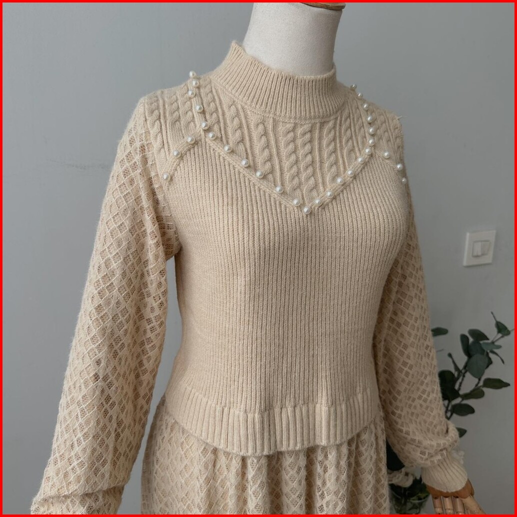 Oclo Laravin Tunic Casual Basic Atasan Tunik Wanita Rajut Manik Lengan Panjang Terbaru Ocl00940