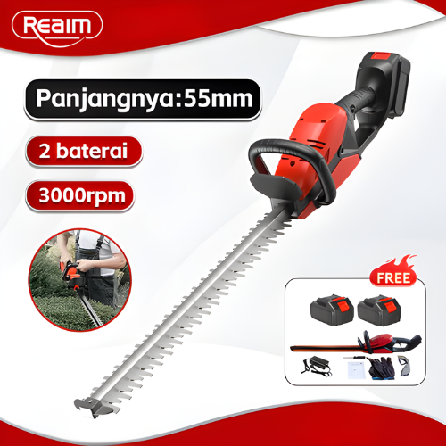 MESIN POTONG RUMPUT BATERAI REAIM PEMANGKAS DAHAN RANTING BUNGA TAMAN CORDLESS HEDGE TRIMMER LOGAM ALUMINIUM MURAH