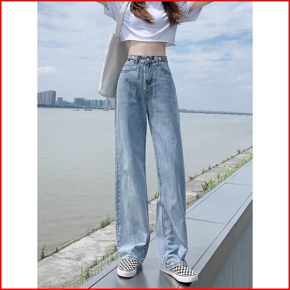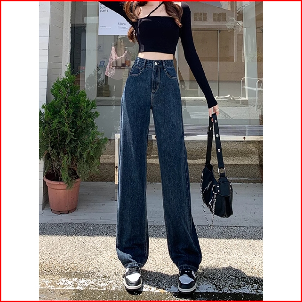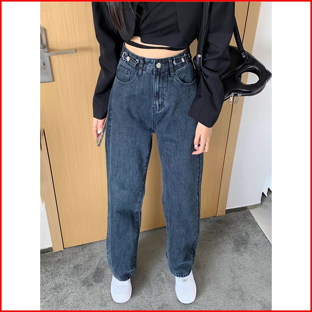 Highwaist Kulot Loose Jeans Wanita Korea Straight Celana Jeans Wanita Kekinian