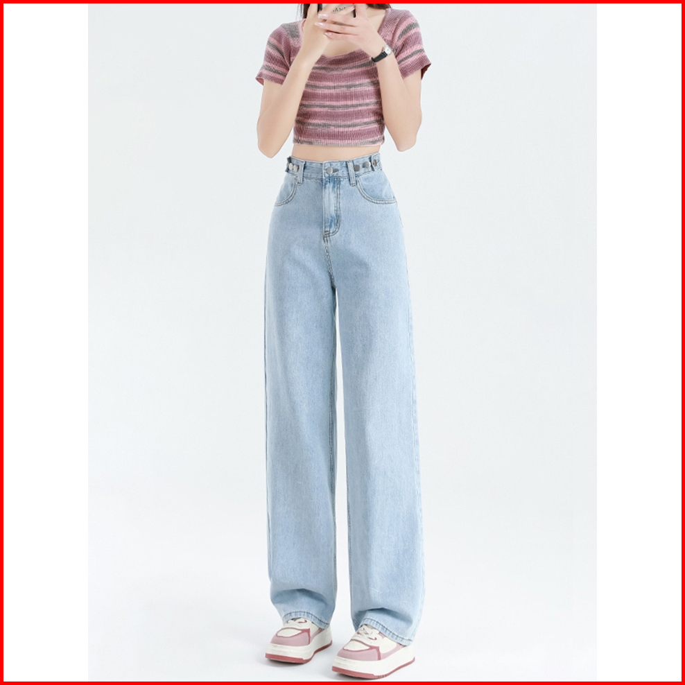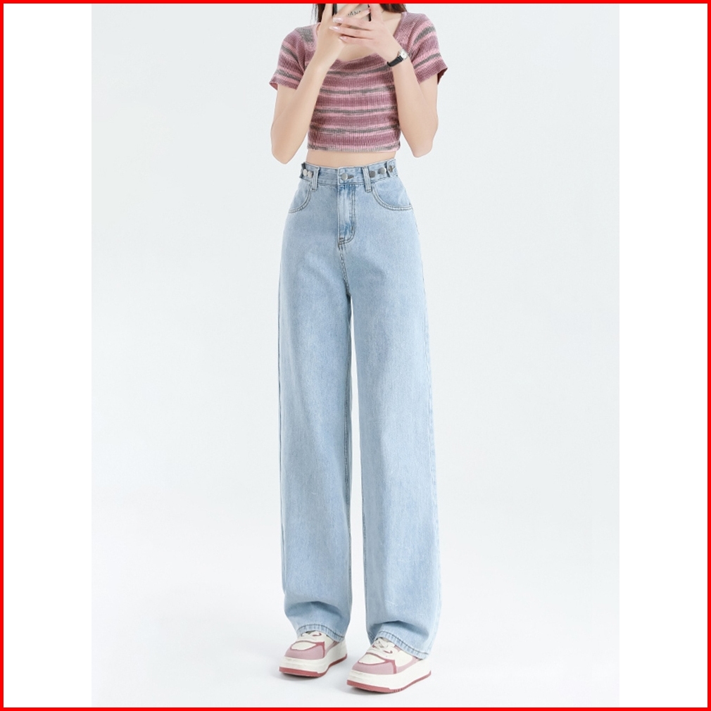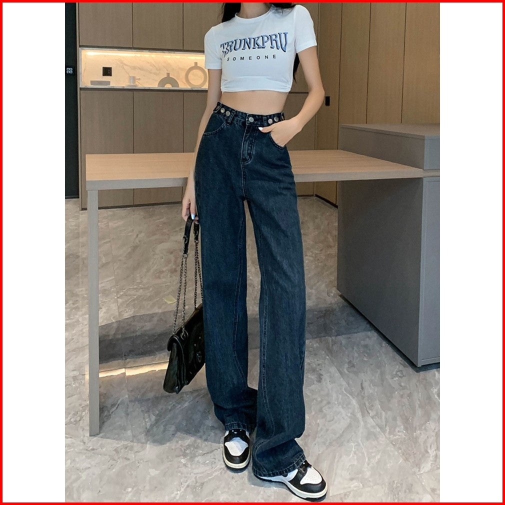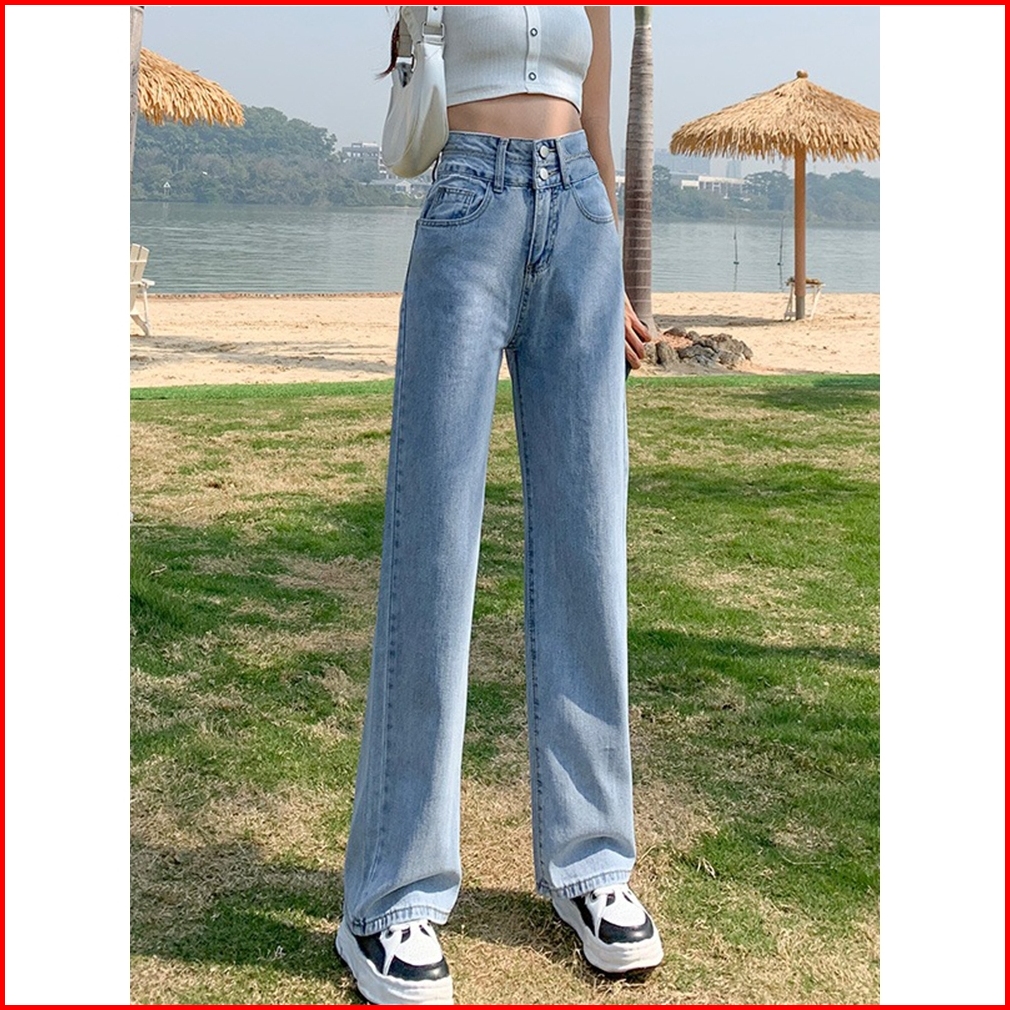 Highwaist Kulot Loose Jeans Wanita Korea Straight Celana Jeans Wanita Kekinian