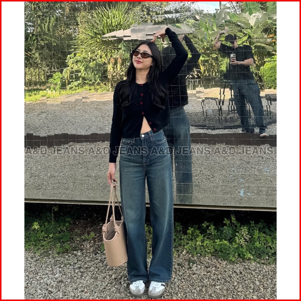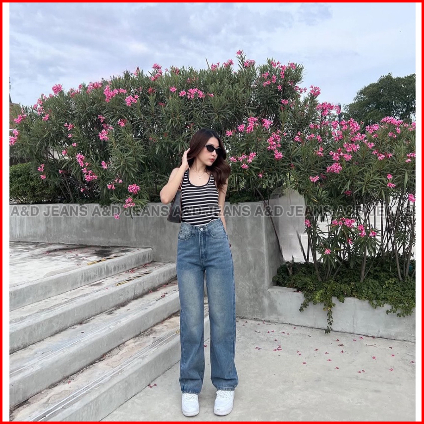 Highwaits Loose Adjustable Baggy Under Age Jeans Celana Jeans Wanita Kekinian Jeans Loose Straight