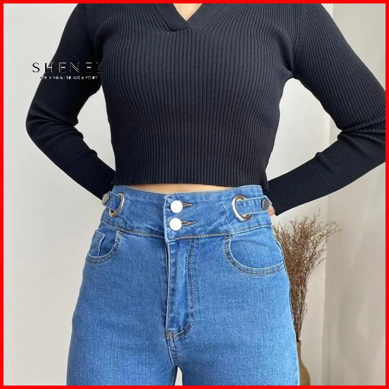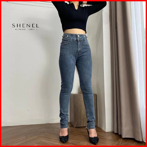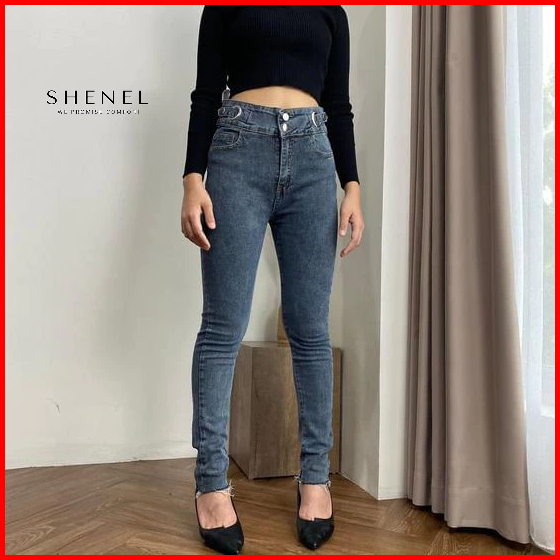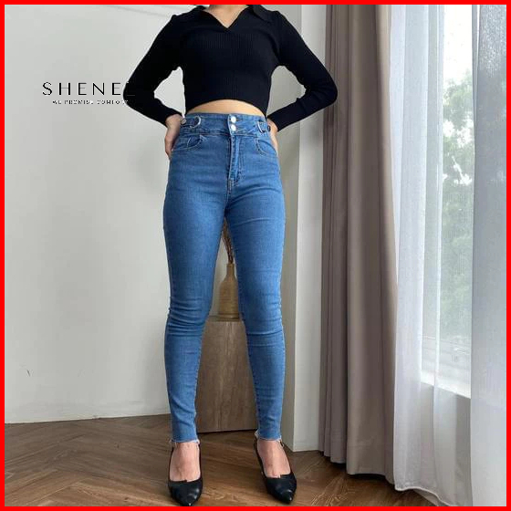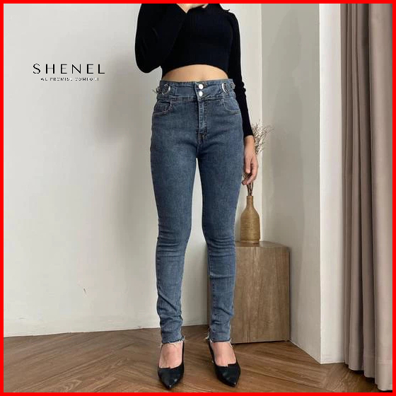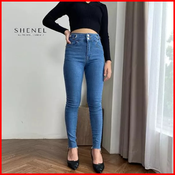 Shenel Zenn Skinny Celana Jeans Wanita Highwaist Jeans Melar Unfinish Cutting Jeans Stretchy Panjang