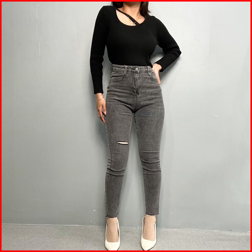 Luxe.dlabel - 163 Jeans Celana Panjang Highwaist Wanita Jeans Premium Quality Jeans Wanita Polos Ripped Jeans Highwaist