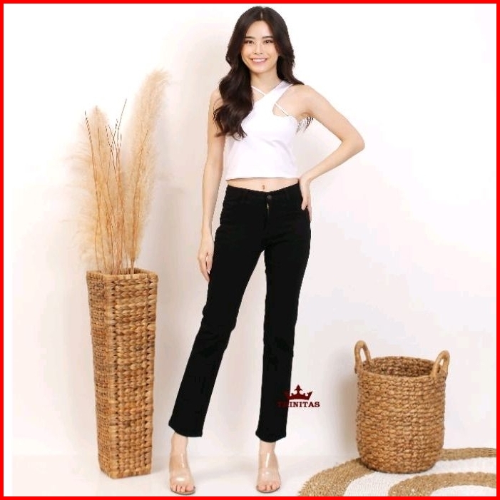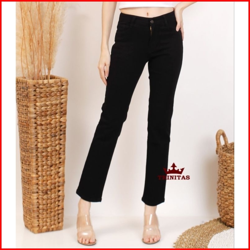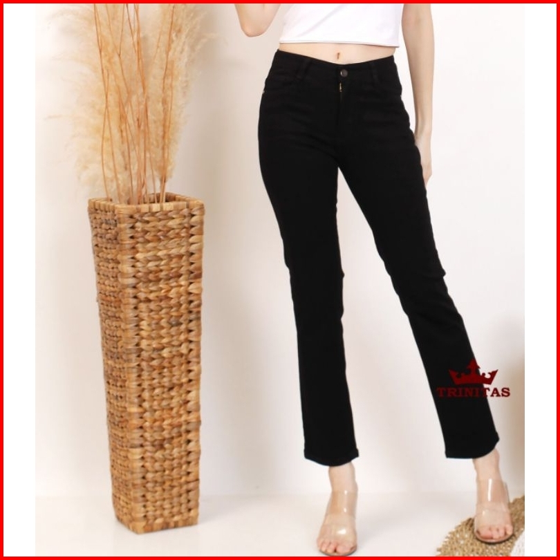 Trinitas Jeans Wanita Stret Hitam Freissy Regular Straight Leg Black Softjeans