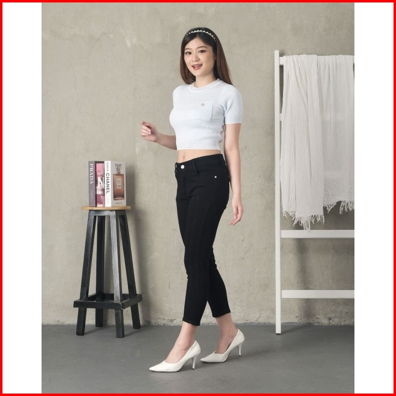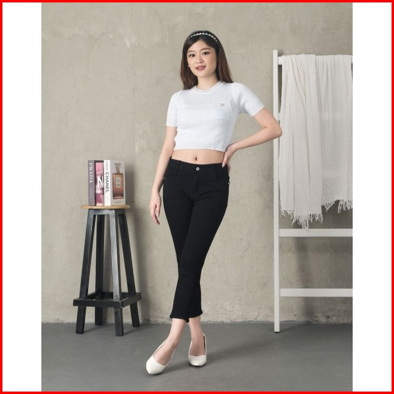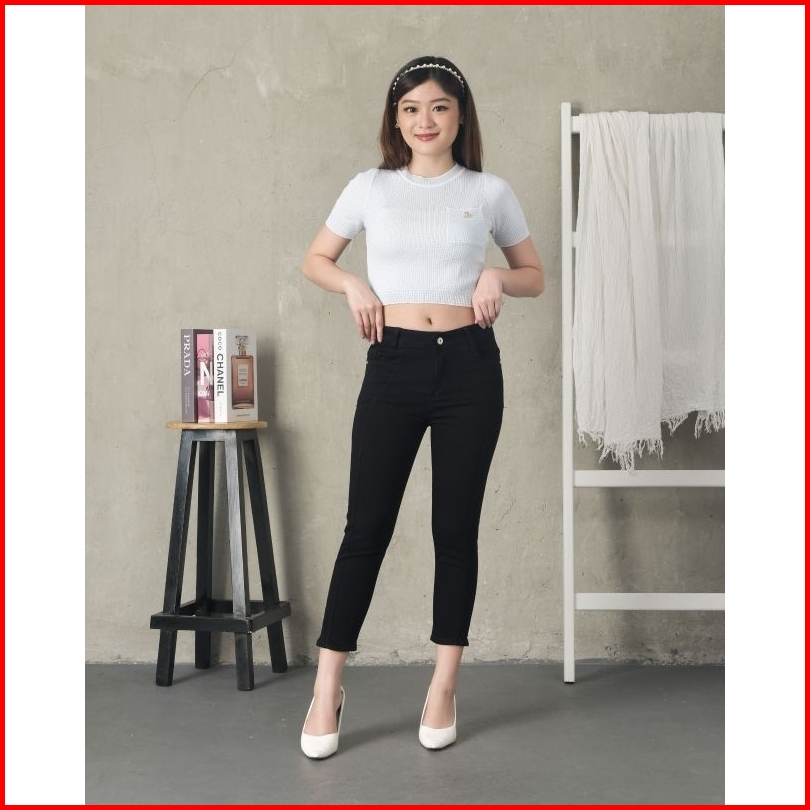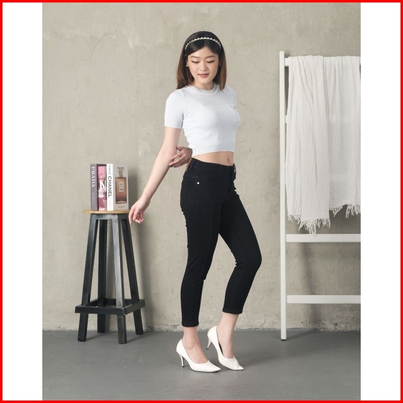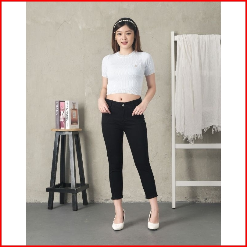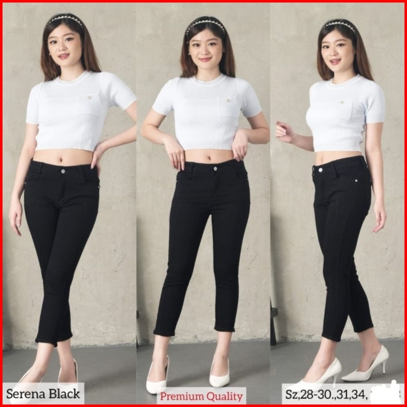 Celana Jeans Wanita Serena 7per9 Hitam Polos Ukuran 28-34