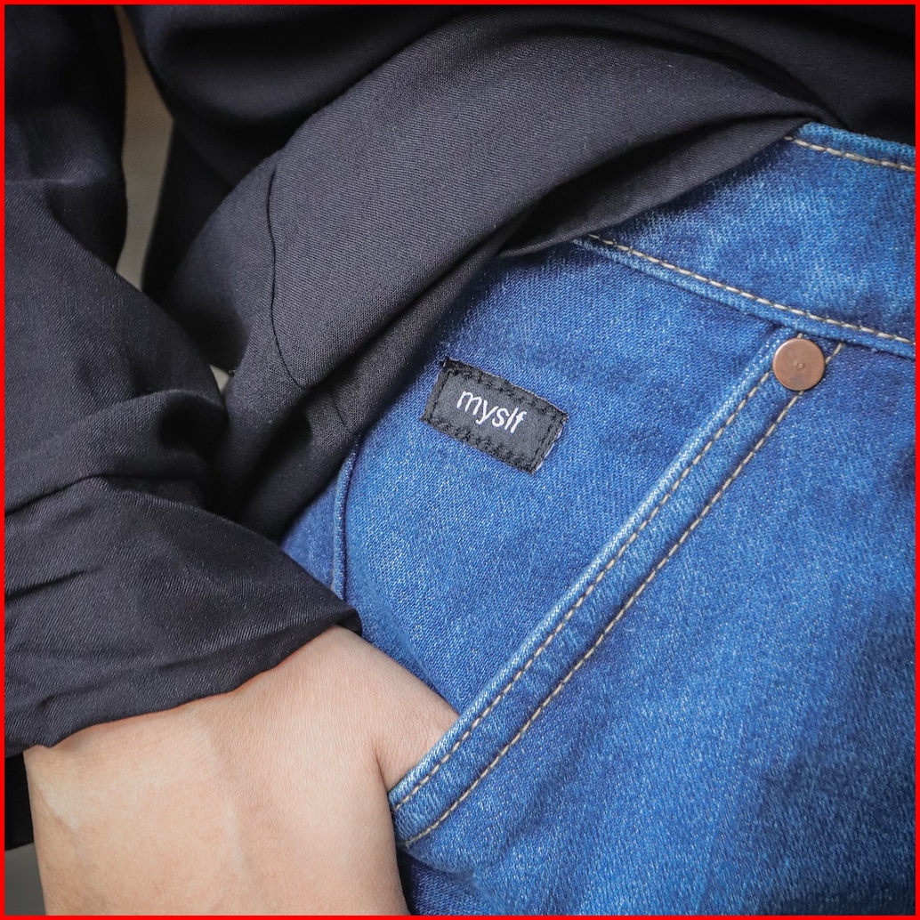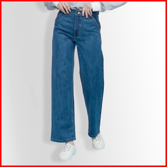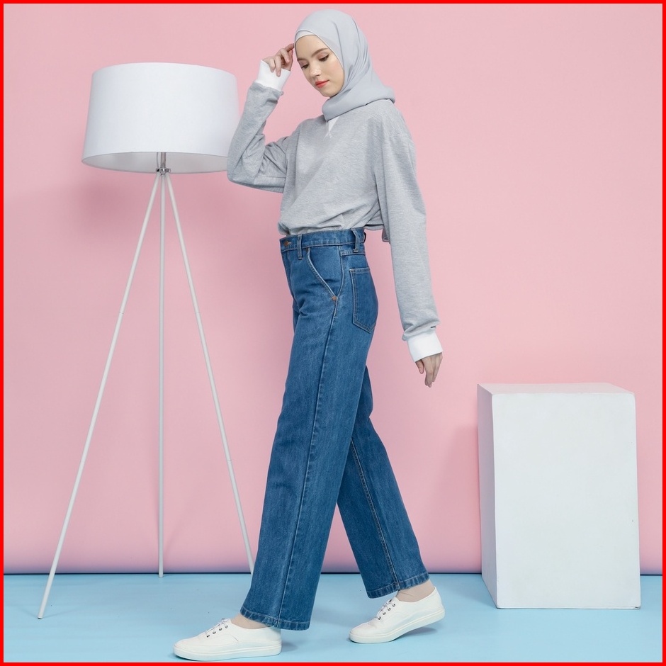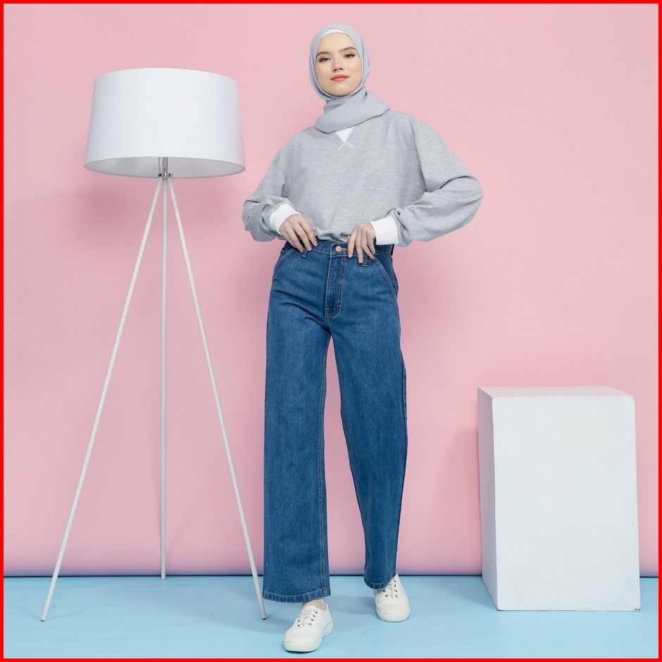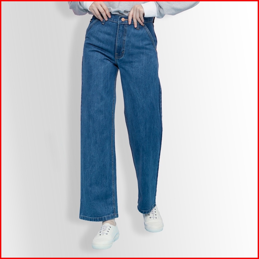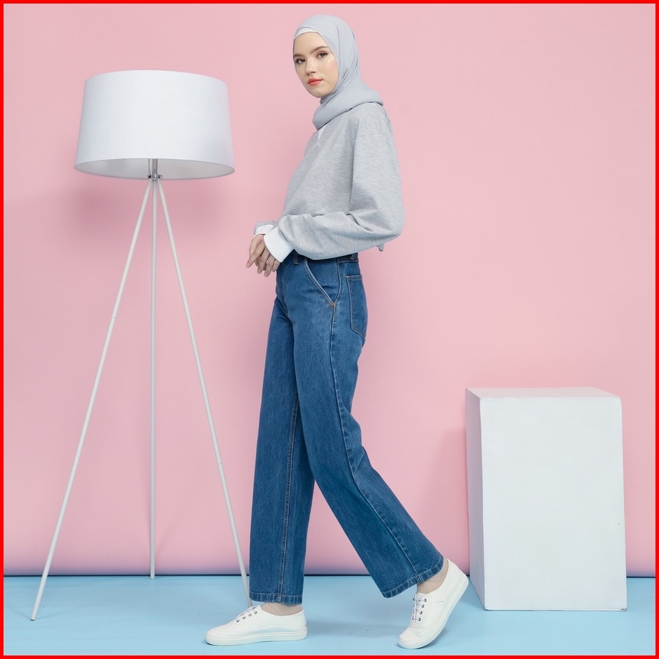 Myself - Celana Jeans Panjang Loose Jeans Wanita Biru Medium Hailey