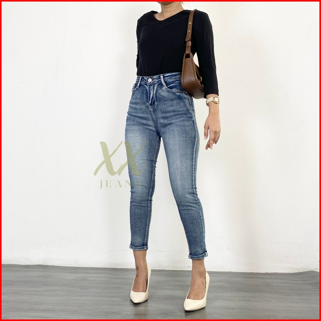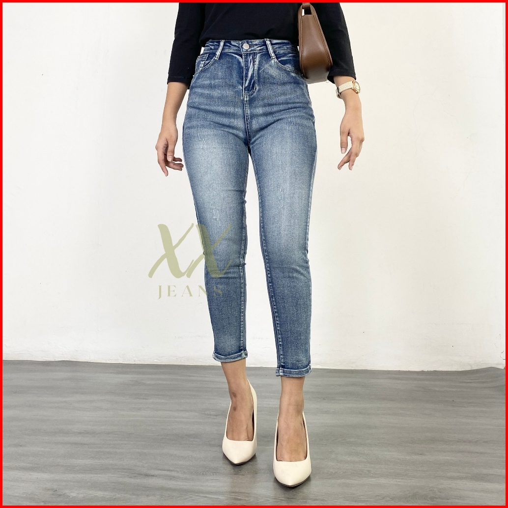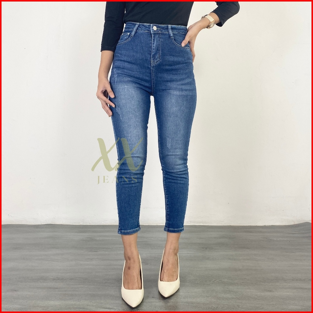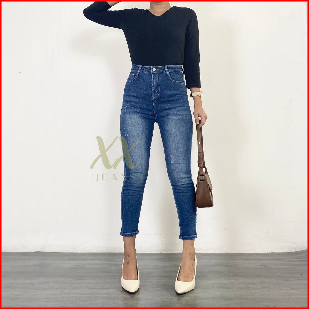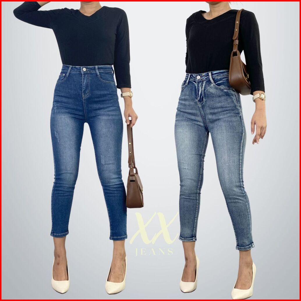 D5 - Celana Jeans Panjang High Waist Wanita Korean Style Skinny Import Premium Quality Biru Abu