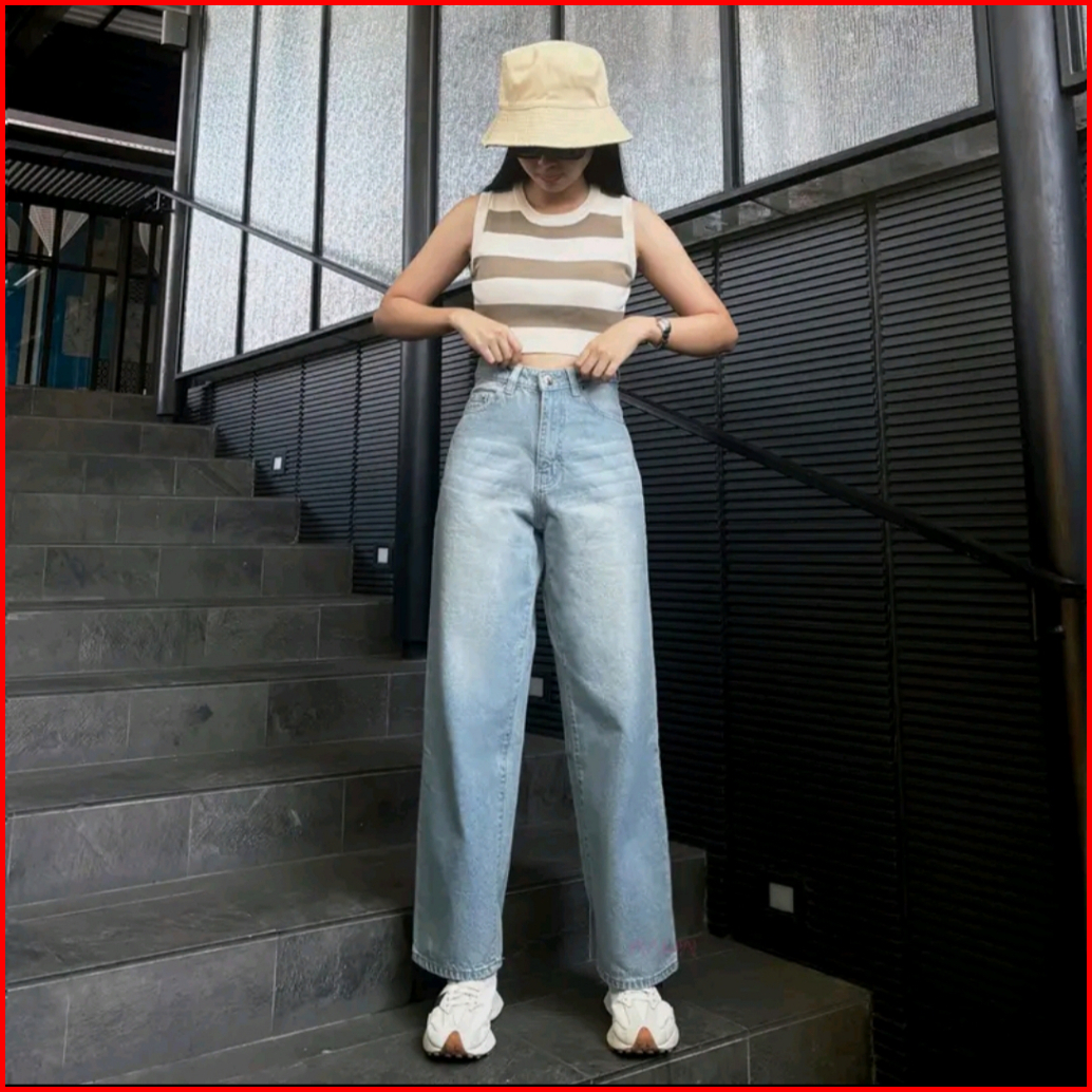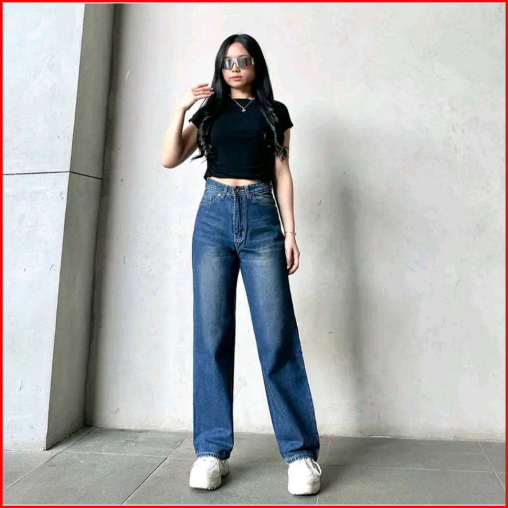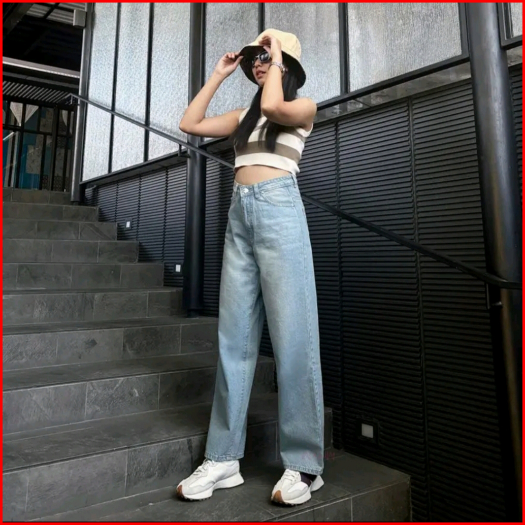 Celana Jeans Wanita Highwaist Loose Kekinian Model Korean Style - Celana Jeans Kulot Wanita Terbaru