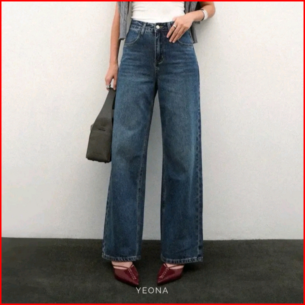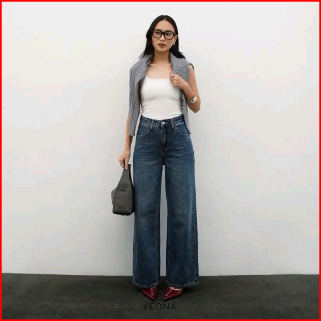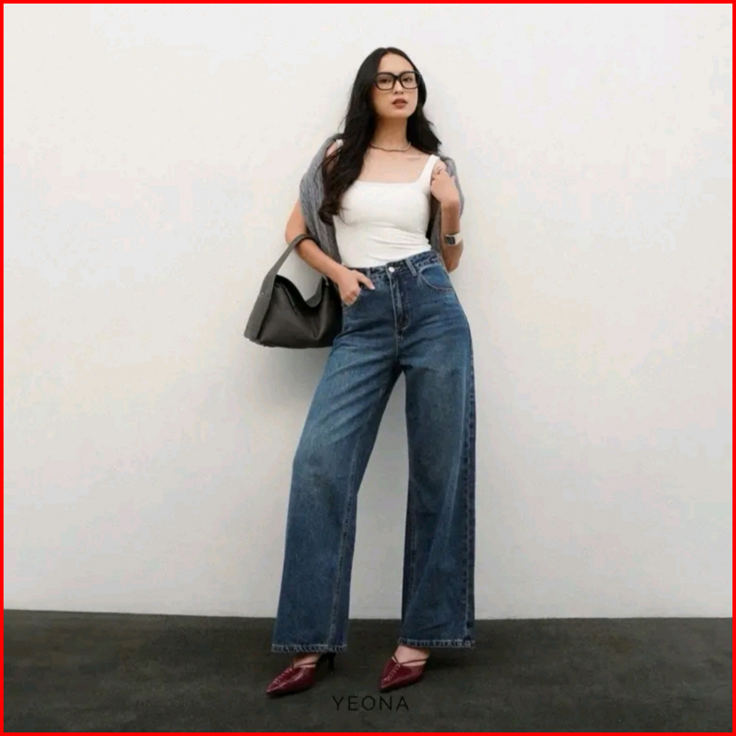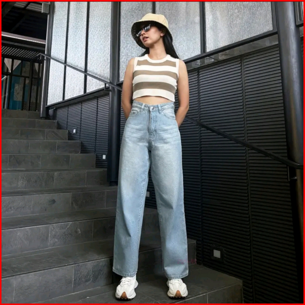 Celana Jeans Wanita Highwaist Loose Kekinian Model Korean Style - Celana Jeans Kulot Wanita Terbaru