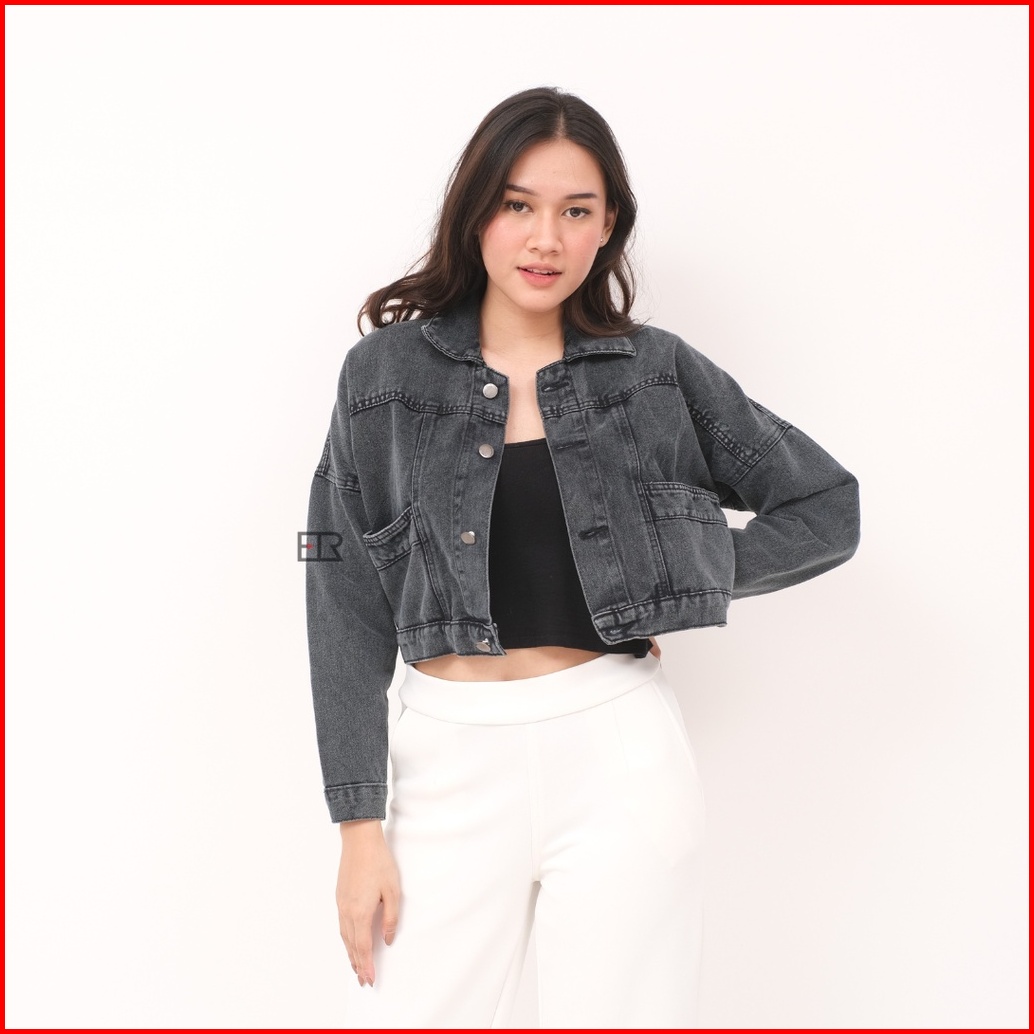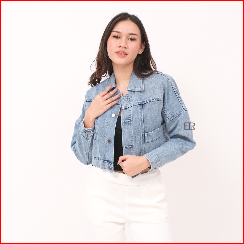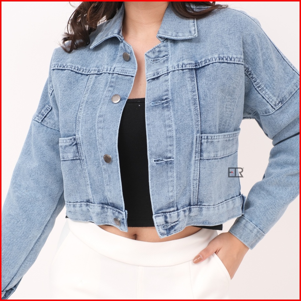 Jaket Crop Jeans Oversize Wanita Premium Model Saku Terbaru - Crop 03 Ftr