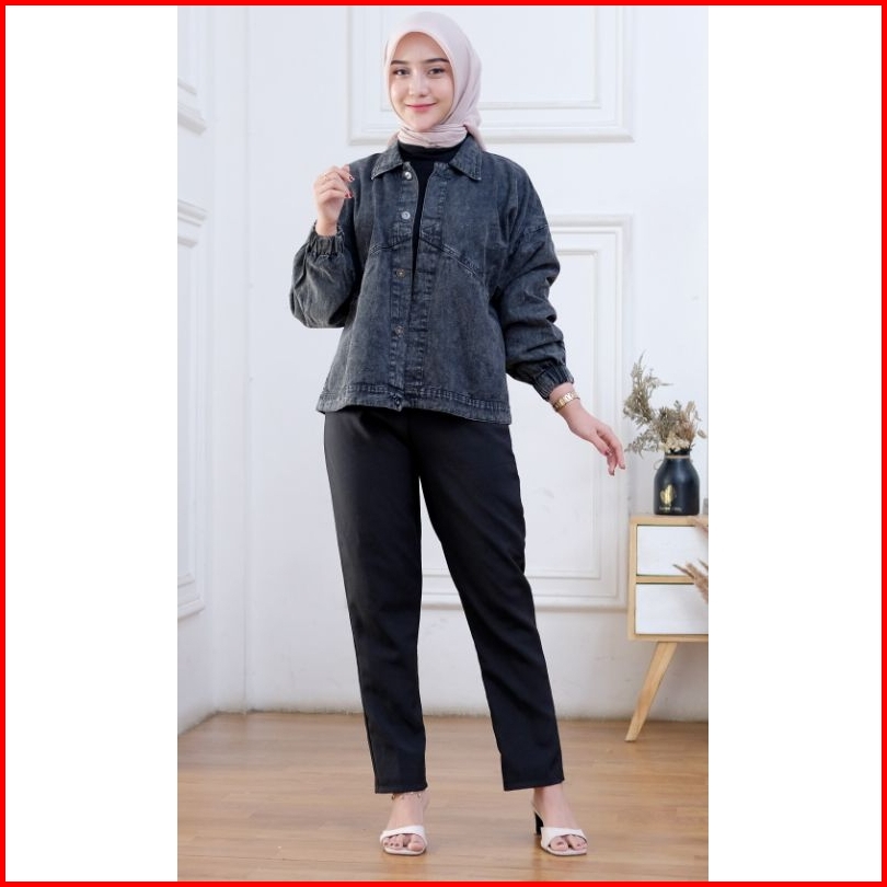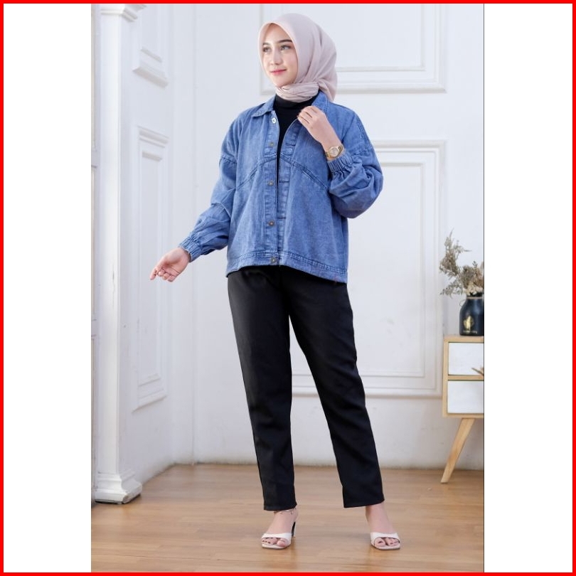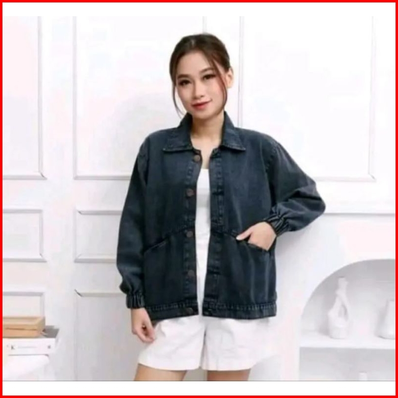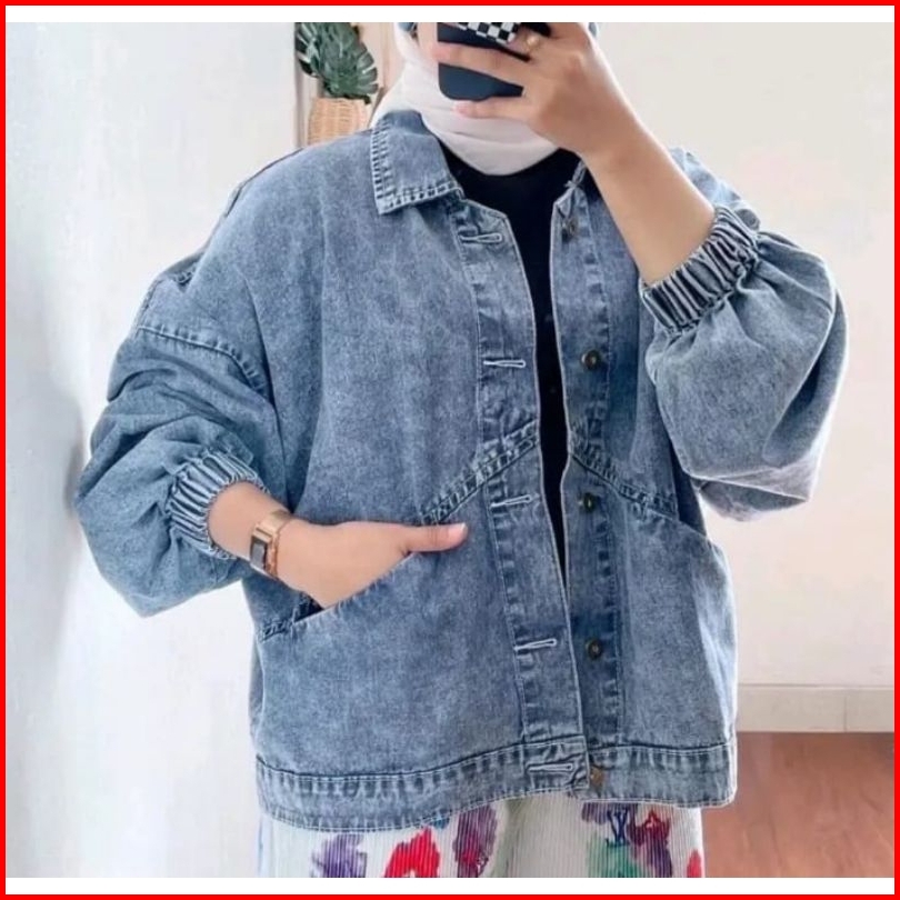 Jaket Jeans Vintage Over Size Wanita Denim Tebal