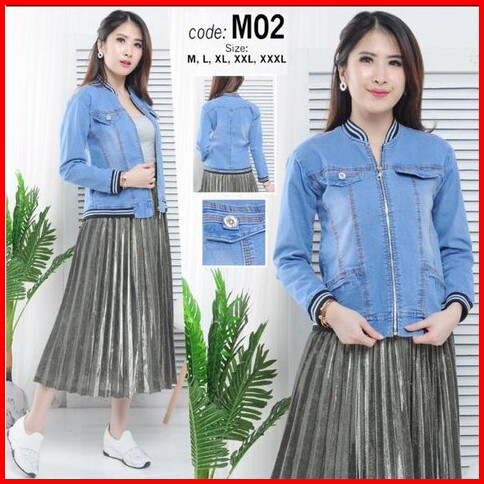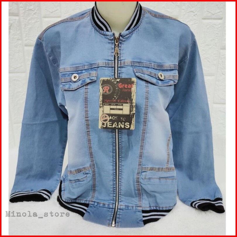 Jaket Jeans Bomber Cewe Denim Melar Wanita Stretch
