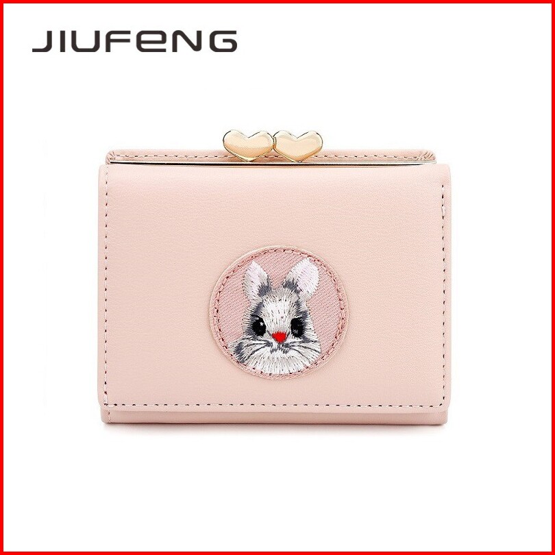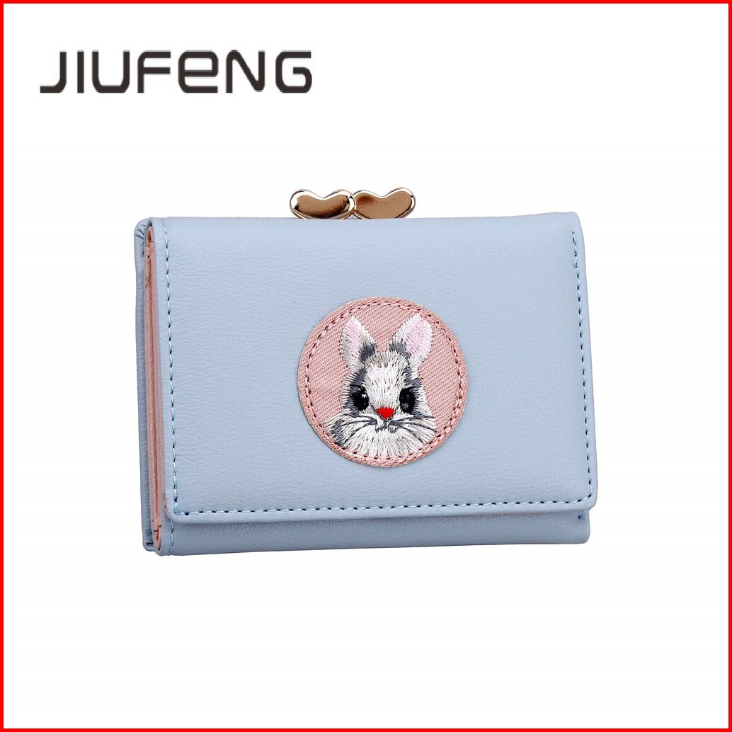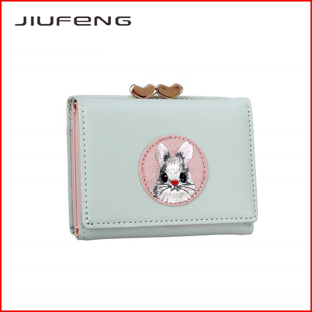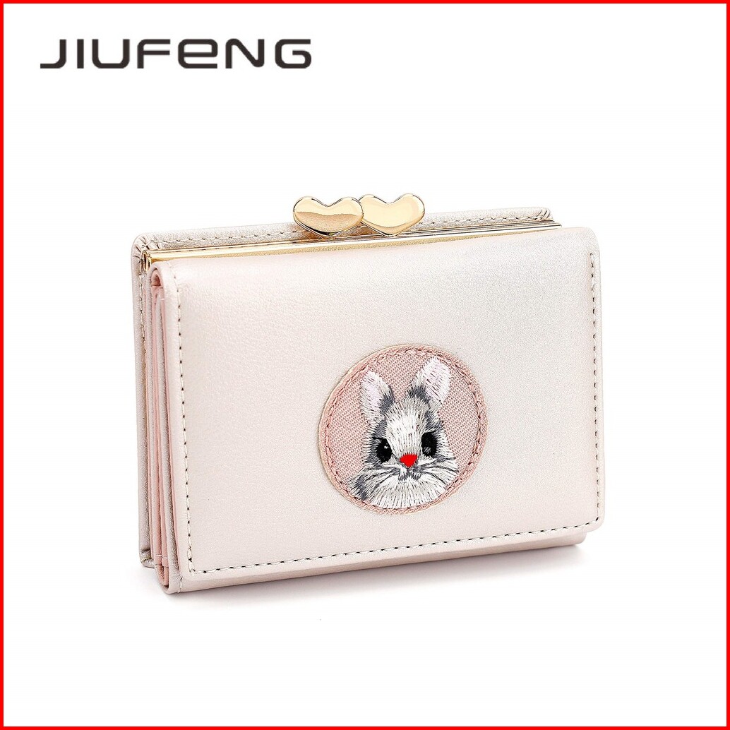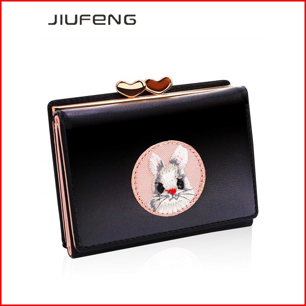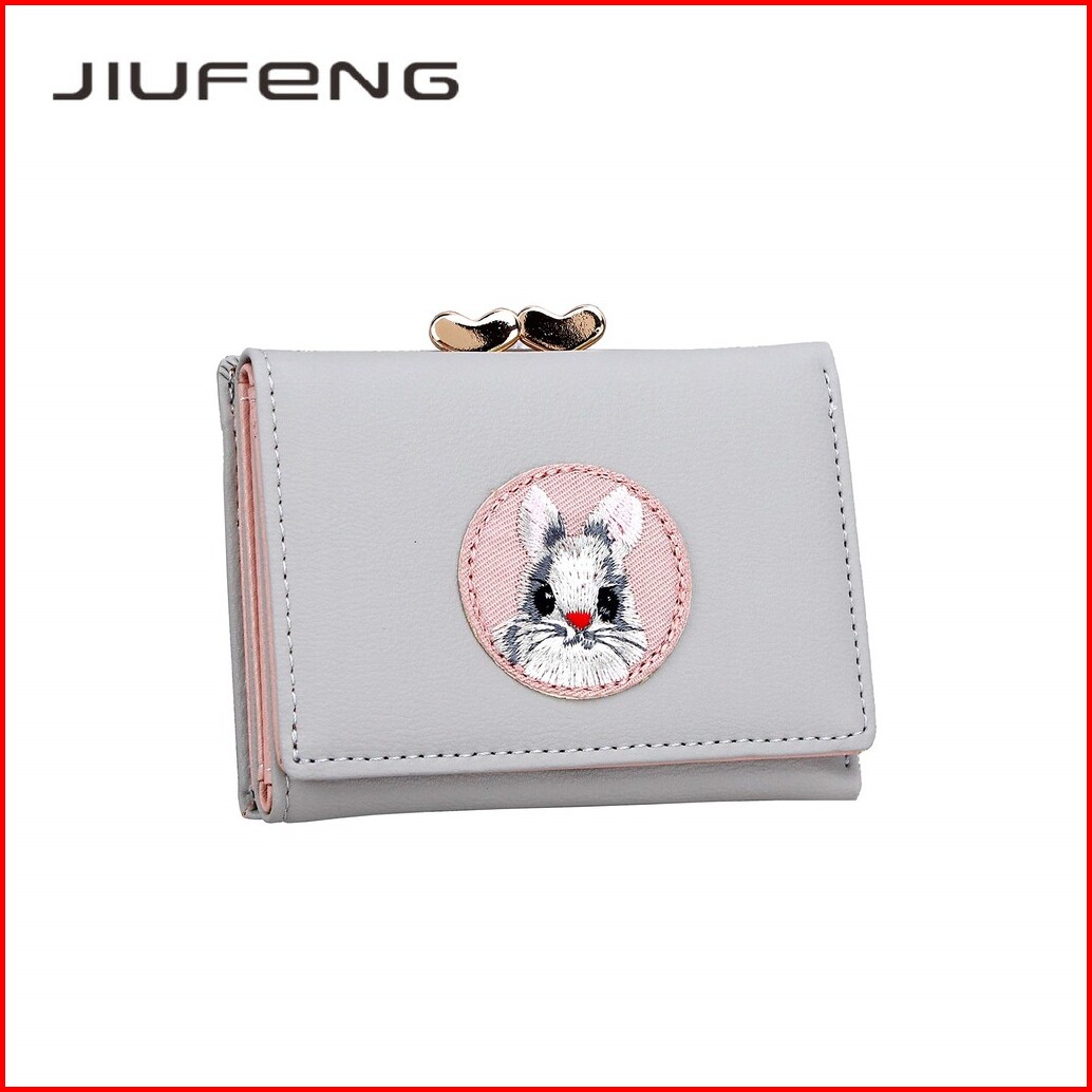 Jiufeng Dompet Pendek Wanita Dompet Serbaguna Hewan Bordir Billfold Pemegang Kartu Kredit