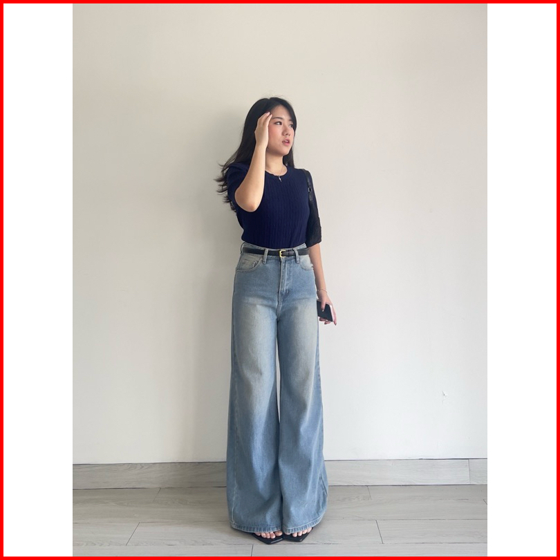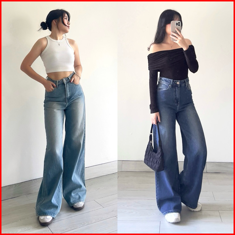 Klavee - Sora Baggy Jeans Celana Denim Panjang Wanita Longgar Retro Highwaist Korean Style Kekinian