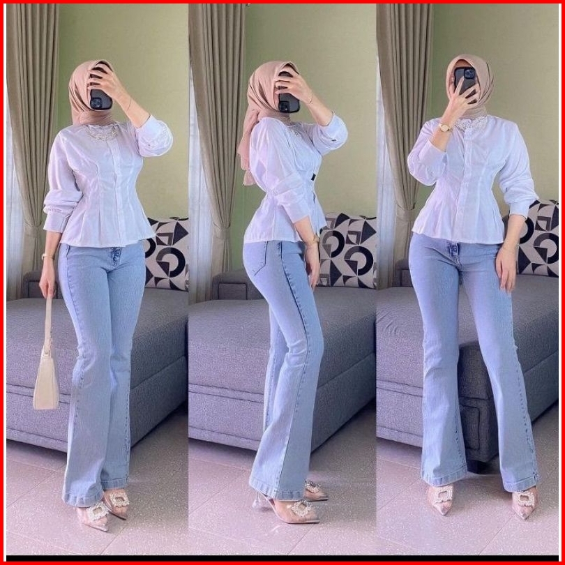 Celana Jeans Cutbray Highwaist Streach Wanita Kekinian Korean Style