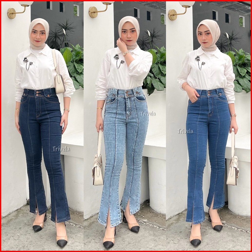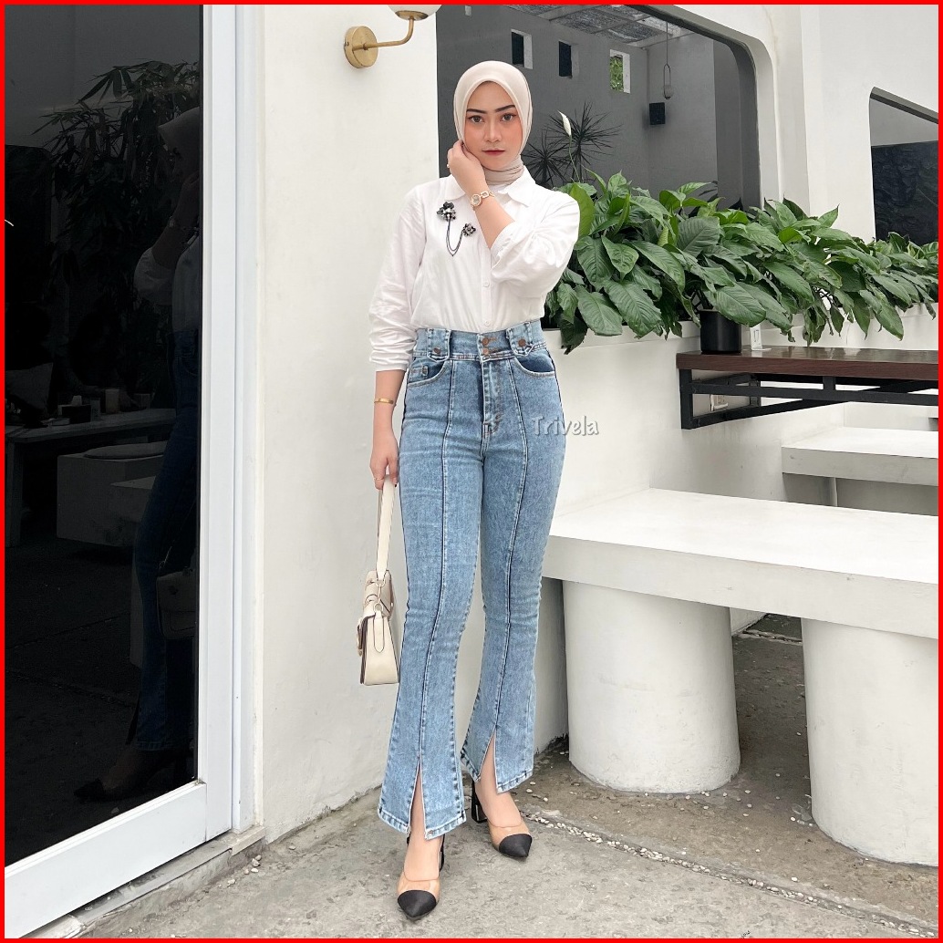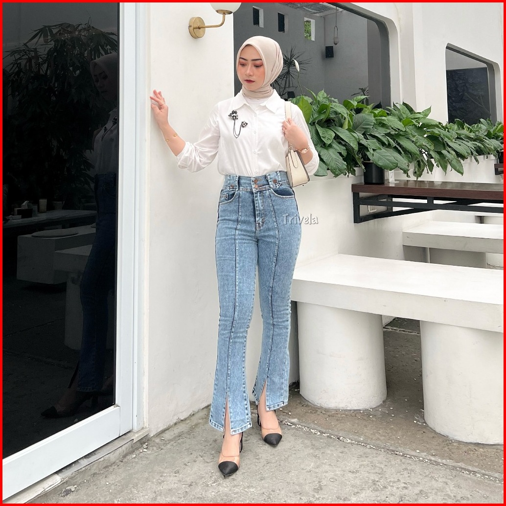 Trivela - Celana Cutbray Loose Front Line Anti Ngatung 27-38 3 Warna - Celana Jeans Cutbray Wanita - Elsa Plainbf