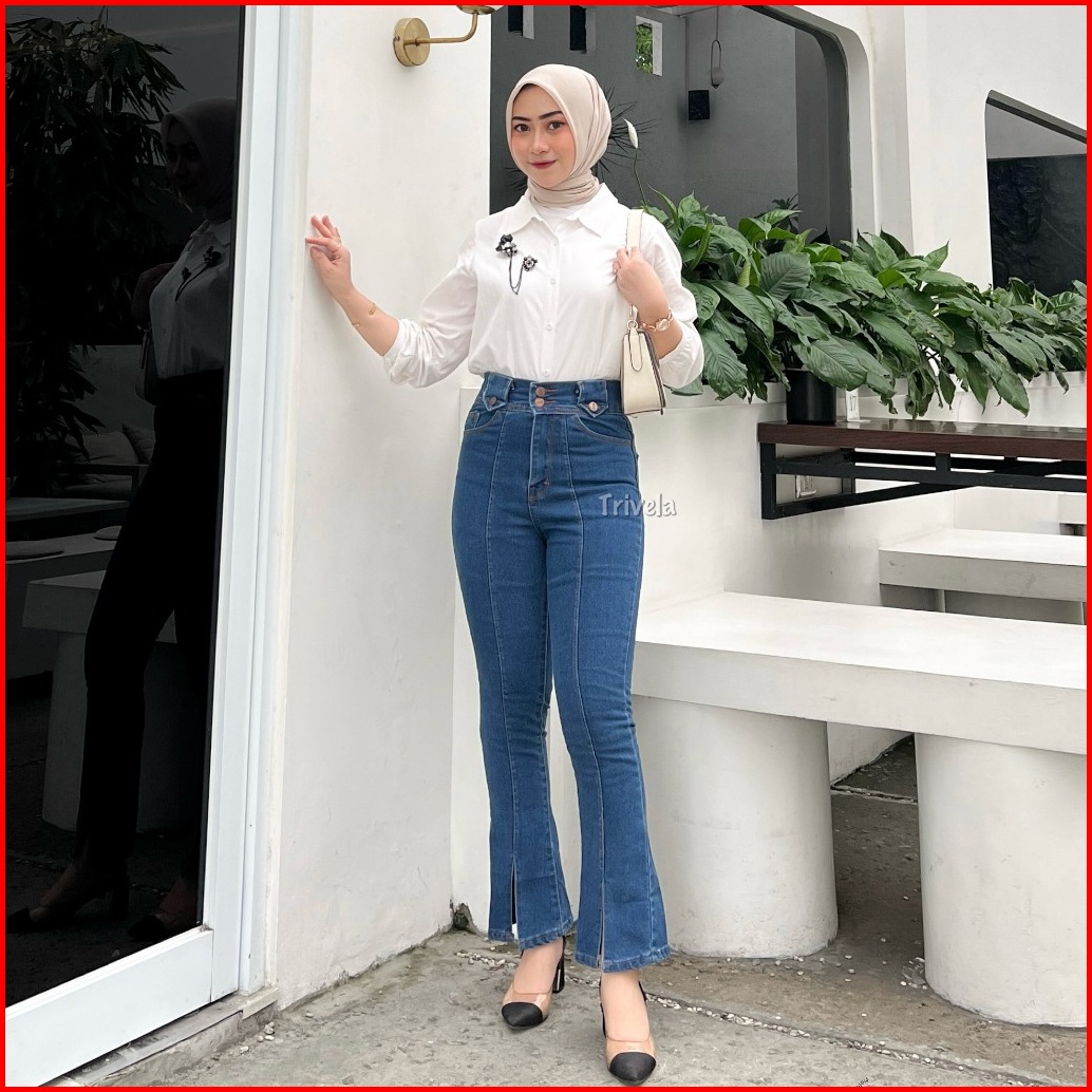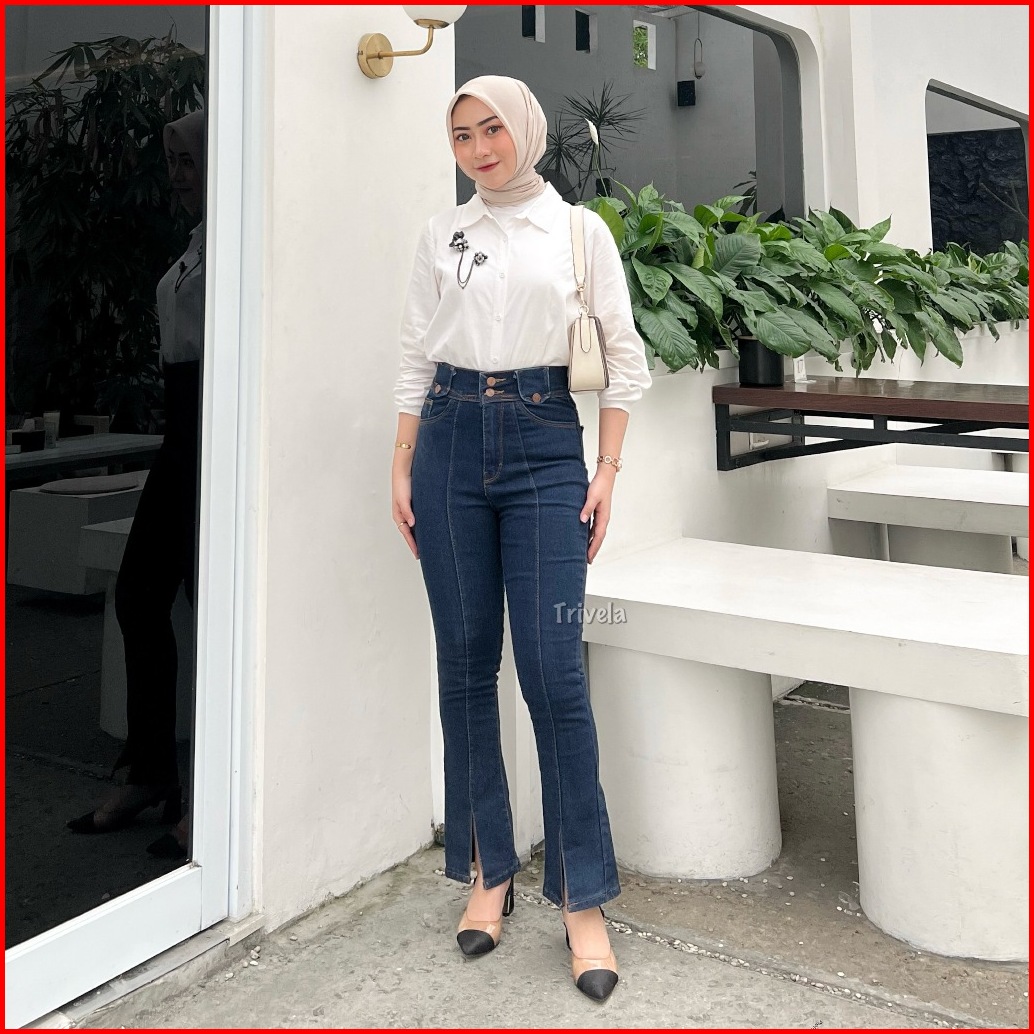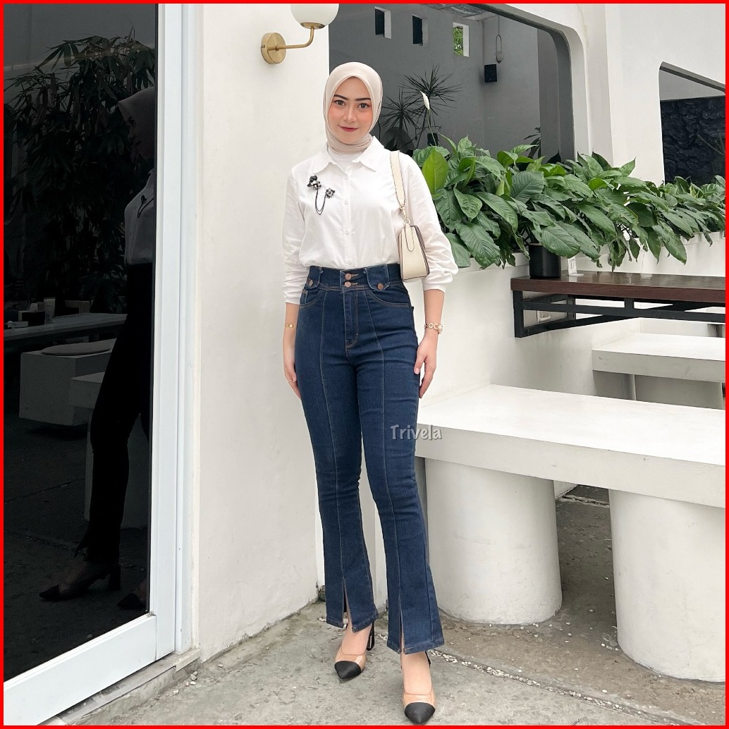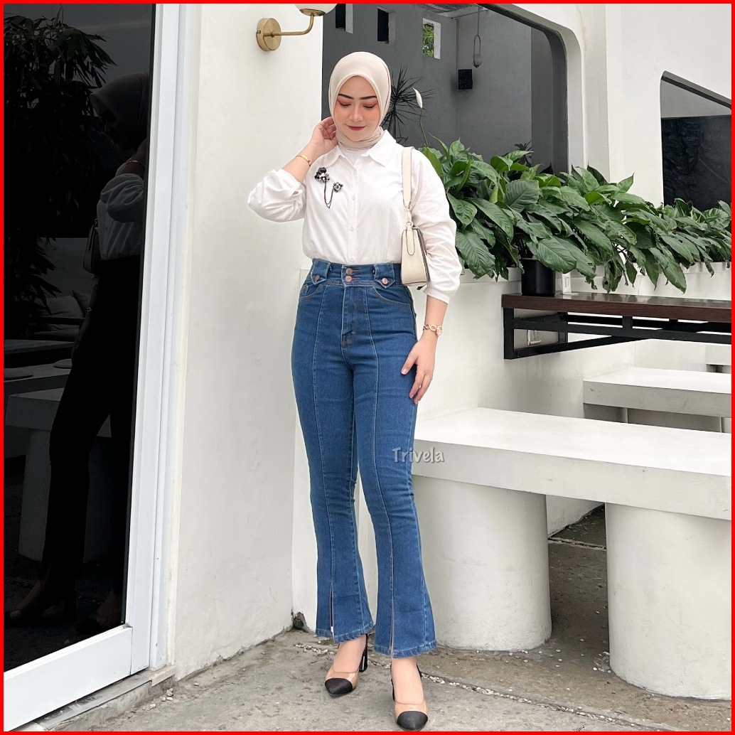 Trivela - Celana Cutbray Loose Front Line Anti Ngatung 27-38 3 Warna - Celana Jeans Cutbray Wanita - Elsa Plainbf
