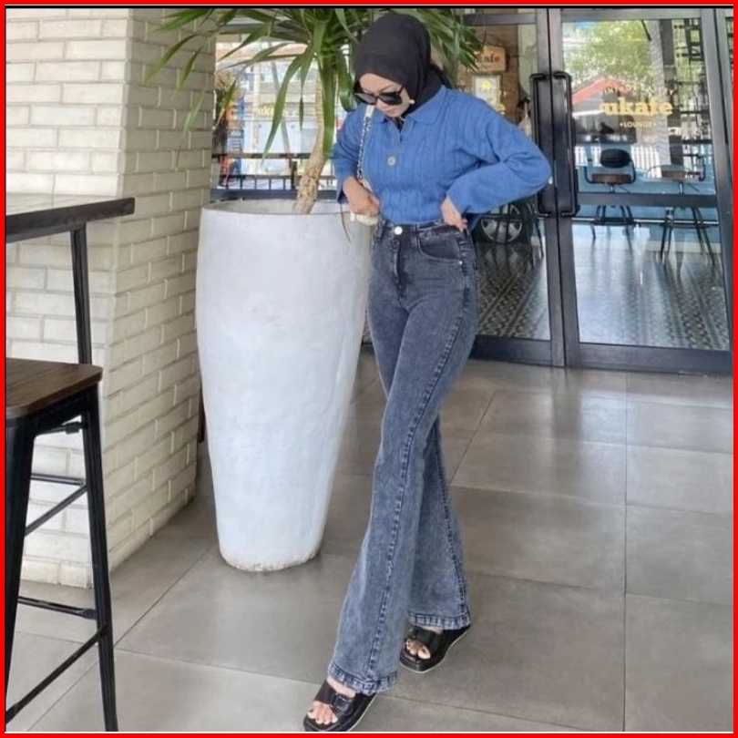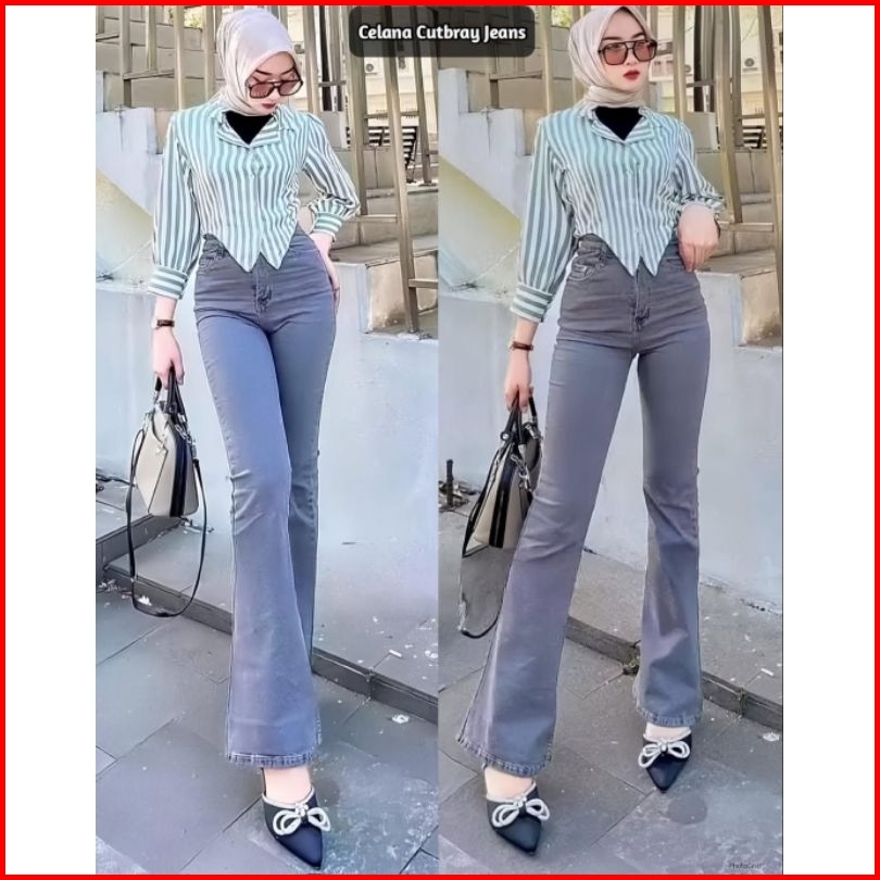 Hw Cutbray Jeans Wanita - Celana Cutbray Strecht Kekinian - Cutbray Flared-streetch Premium Quality