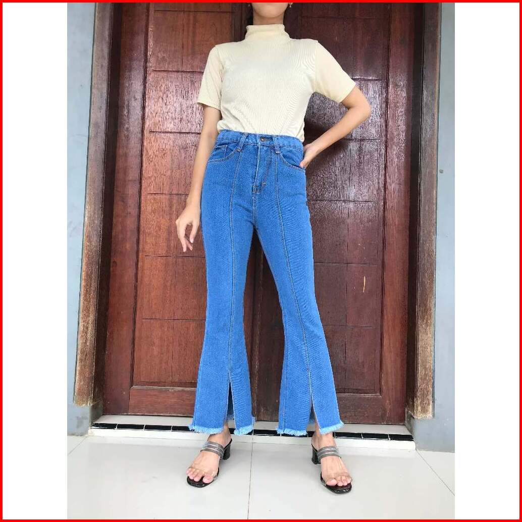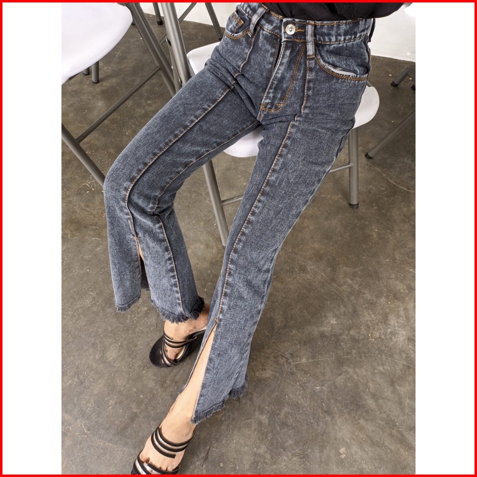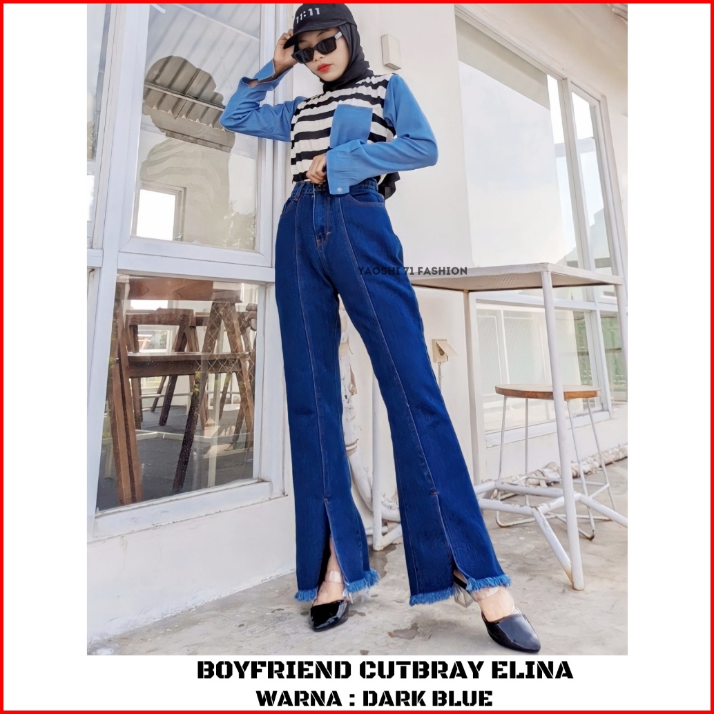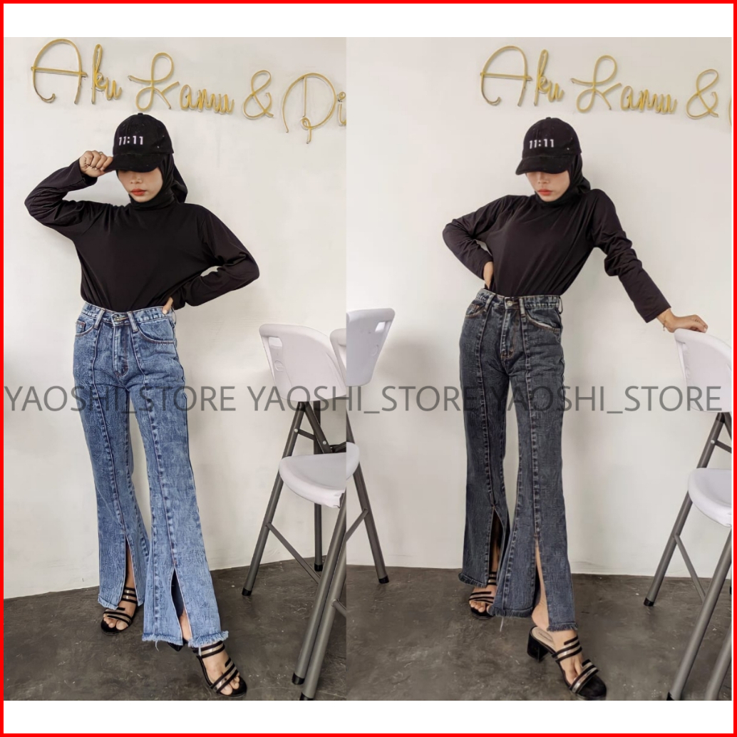 Magcun Store - Elina Cutbray Jeans Snow Jeans Cutbray Pinggang Tinggi Celana Jeans Pinggang Tinggi Wanita Cutbray 27-34