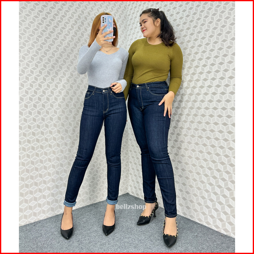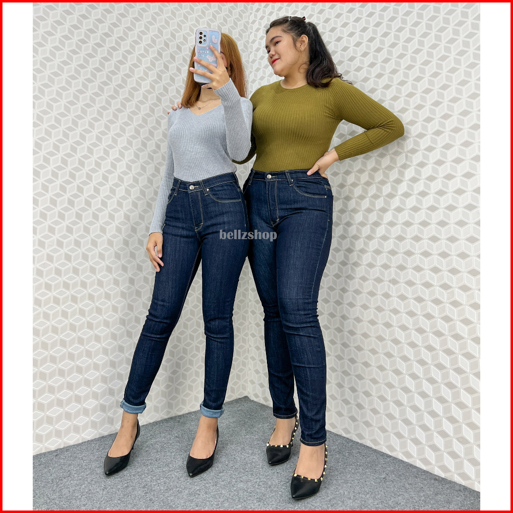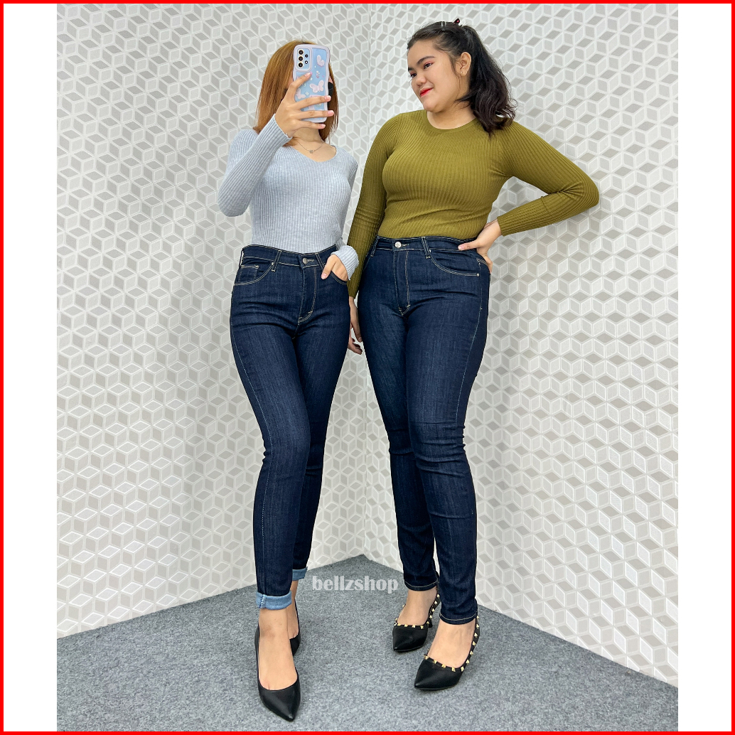 Celana Highwaist Wanita Jeans Skinny Stretch Jumbo Kekinian Premium Biru Garment 4481 Size 27 Sd 34