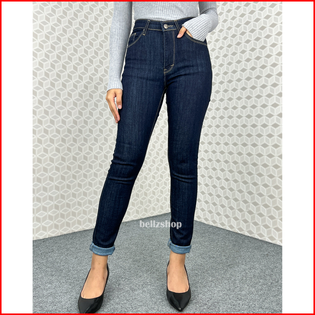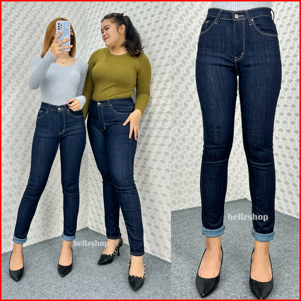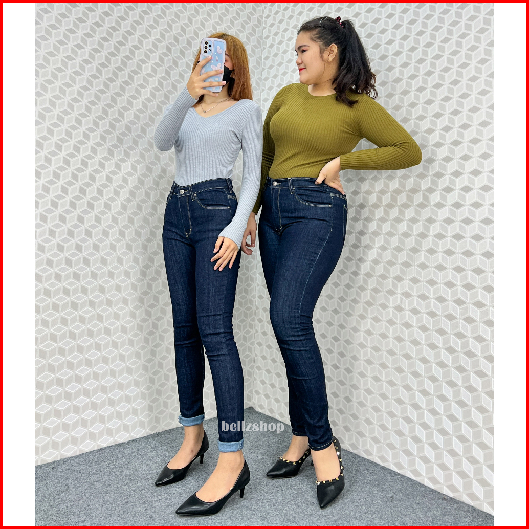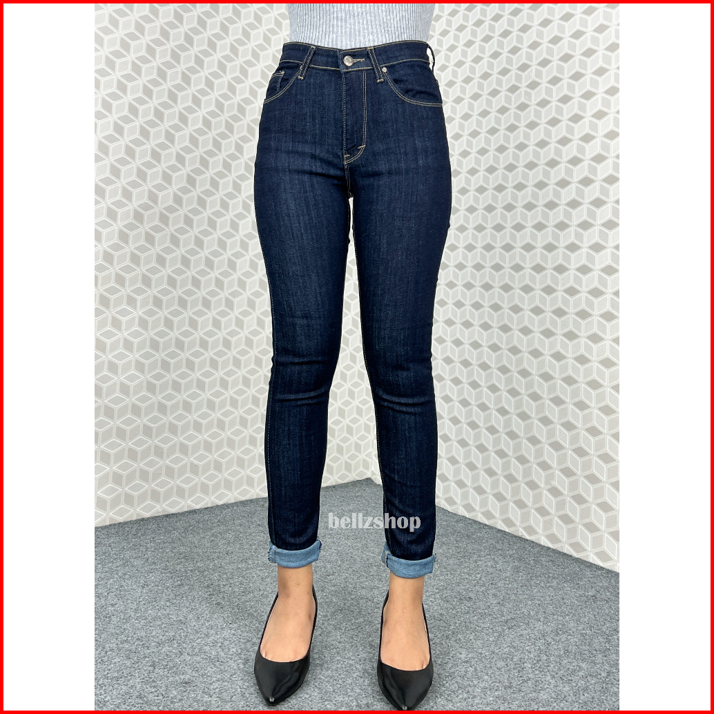 Celana Highwaist Wanita Jeans Skinny Stretch Jumbo Kekinian Premium Biru Garment 4481 Size 27 Sd 34