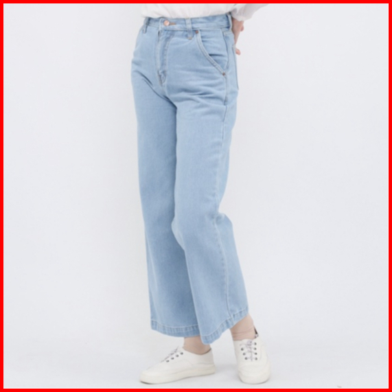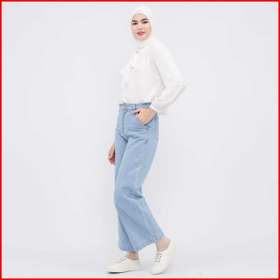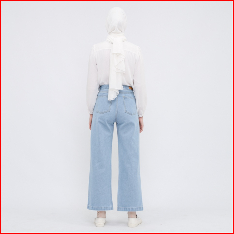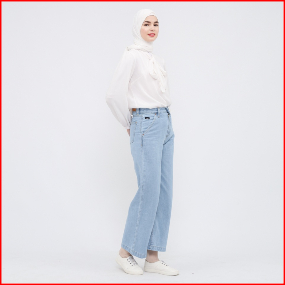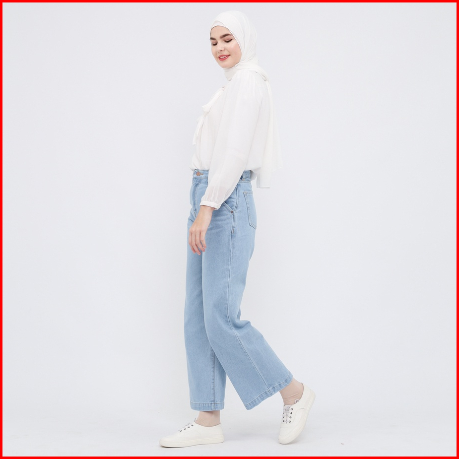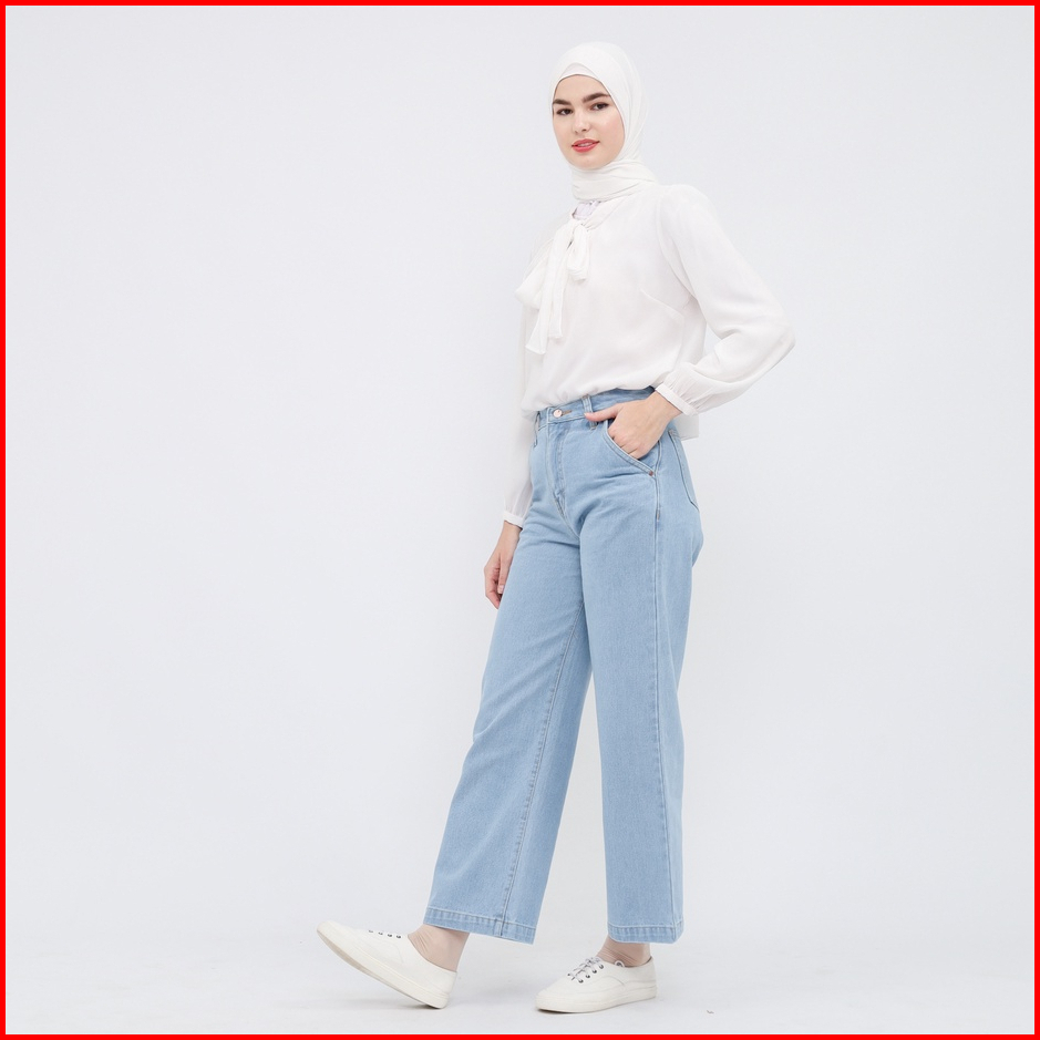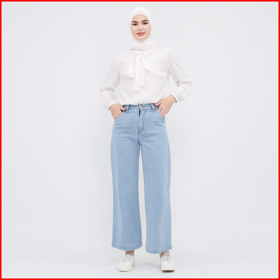 Myself Celana Jeans Wanita Loose Baggy High Waist Biru Muda Vionzy