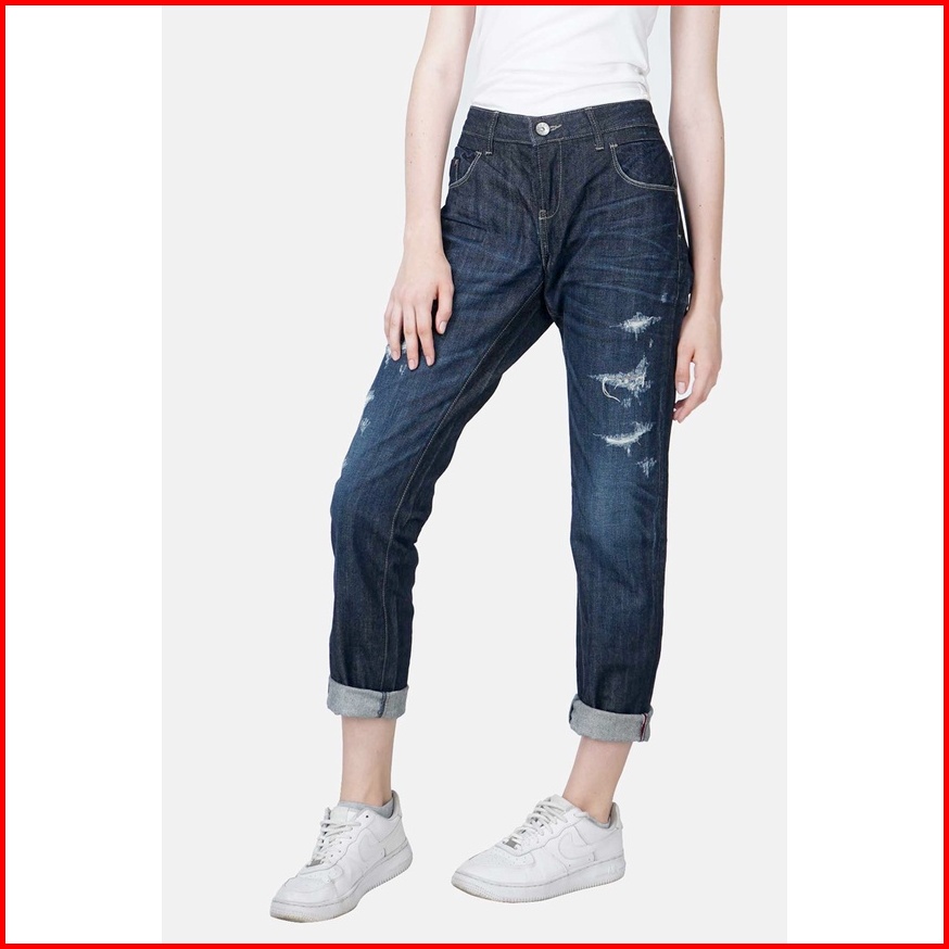 Logo Jeans Celana Jeans Wanita Boyfriend 75 Series Medium Blue 43f75l3ml