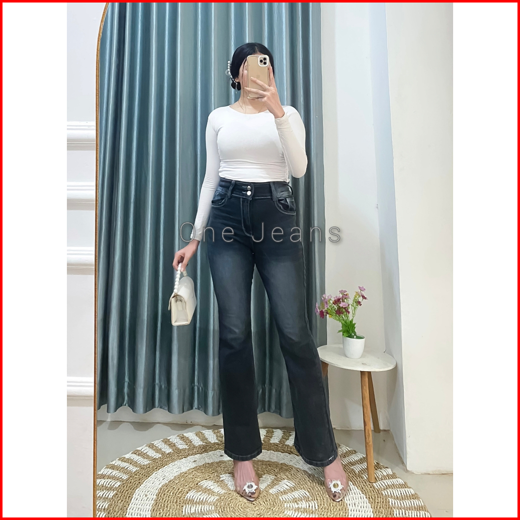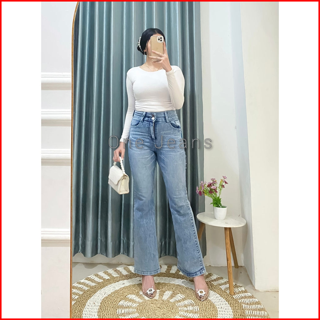 Onejeans - Celana Cutbray Jeans Retro Wanita Terbaru Basic Whisker High Waist Low Kekinian - Cutbray Baggy Jeans Retro H