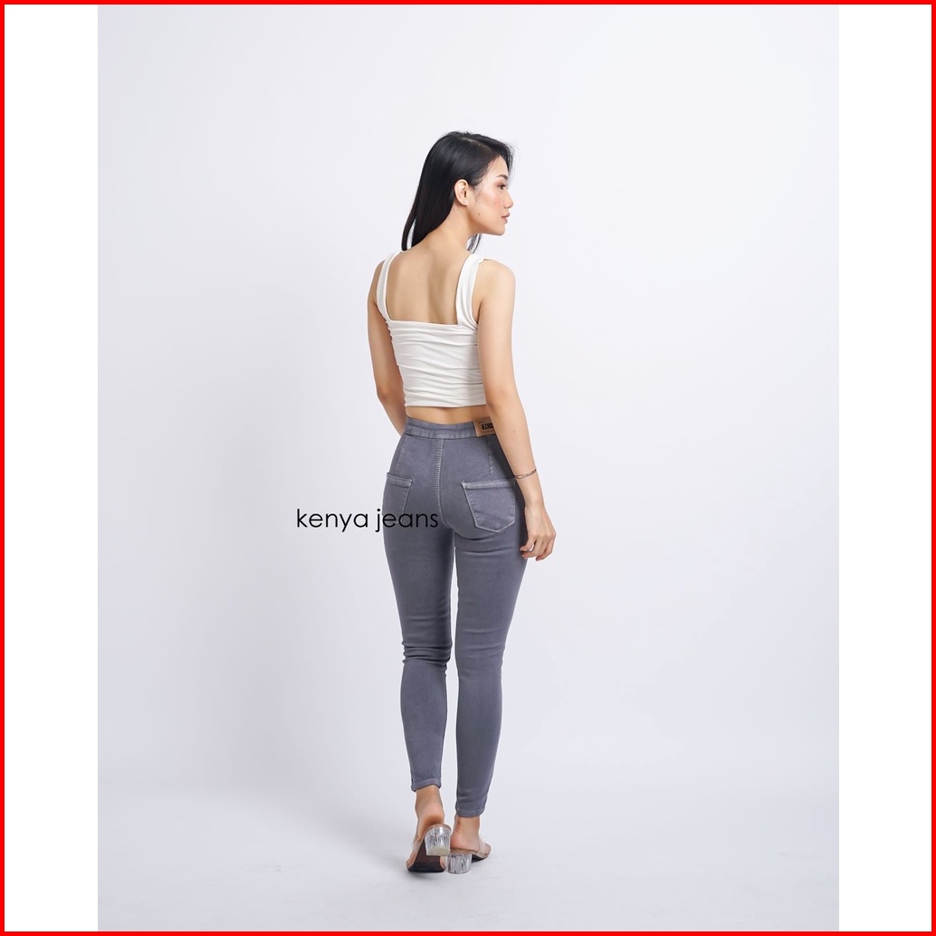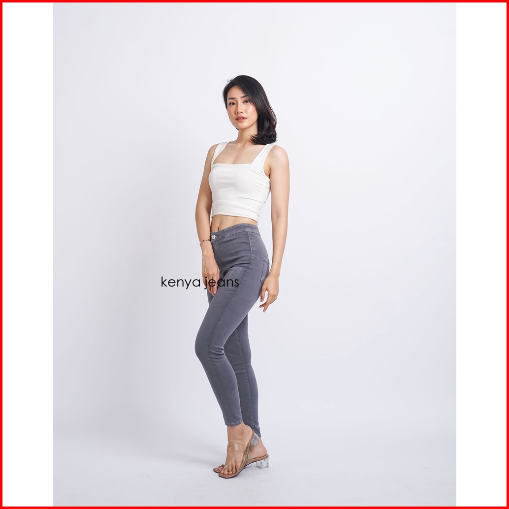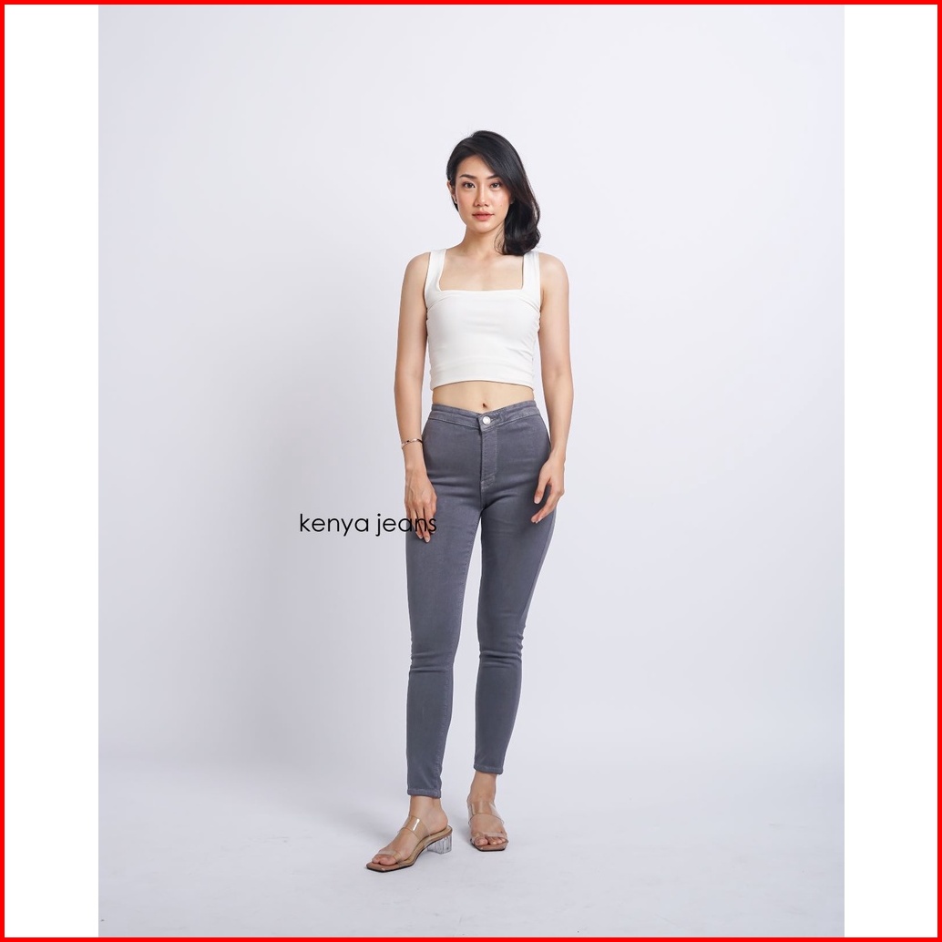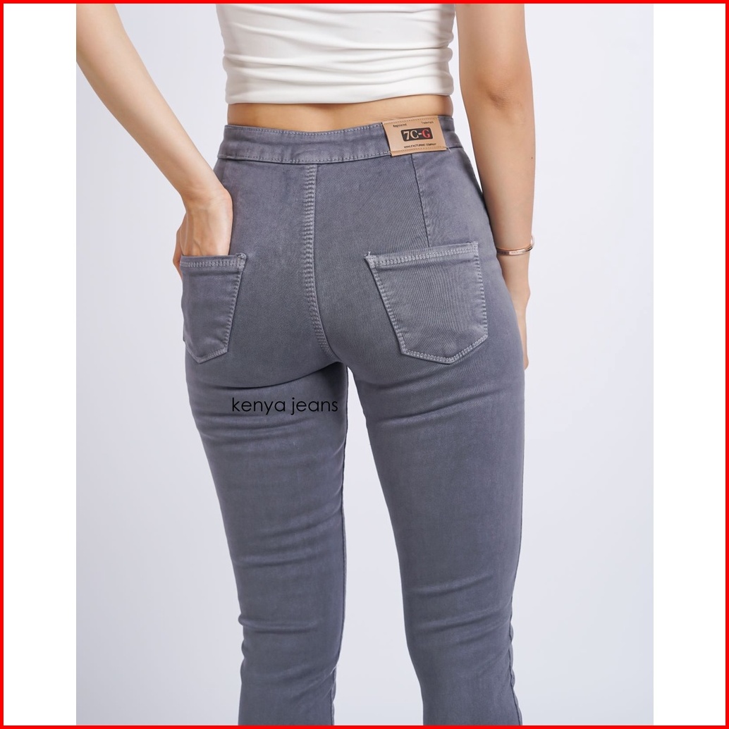 7c-g Celana Jeans Highwaist Premium Pinggang Tinggi Jeans Streach Hw Jeans Abu - Abu 27 - 30