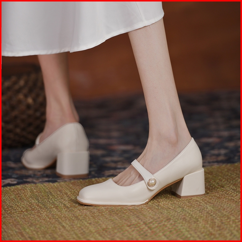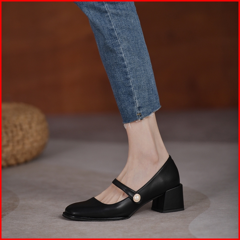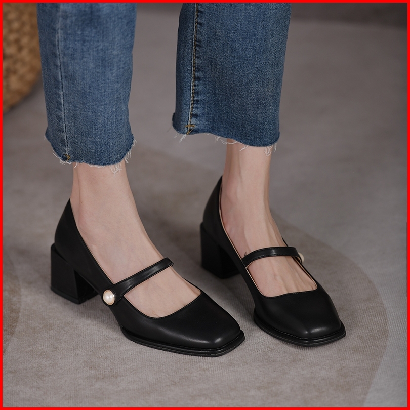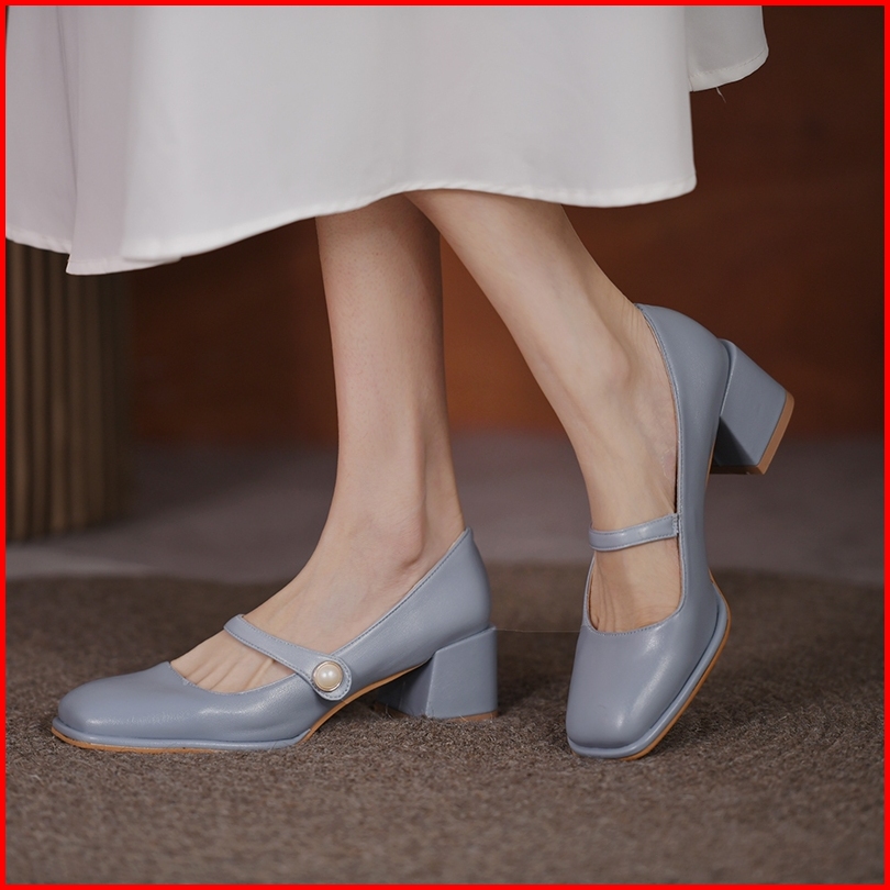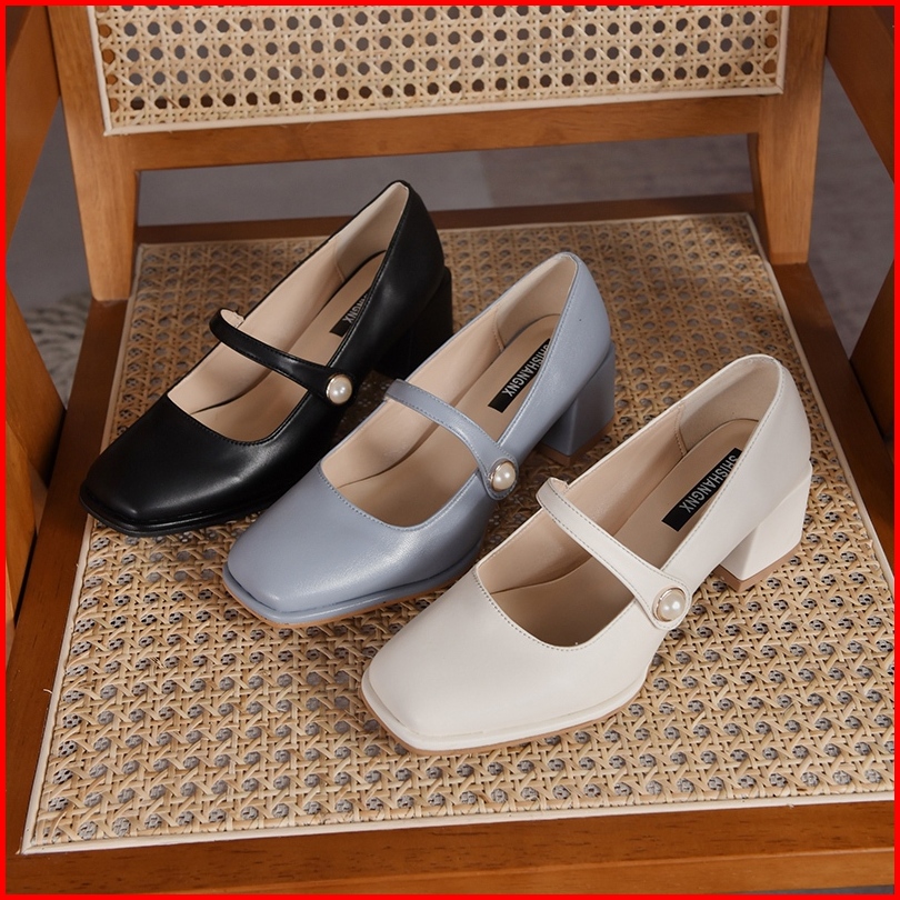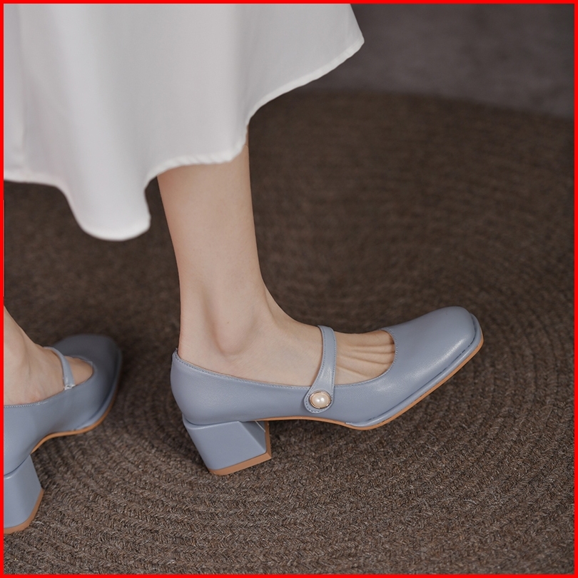 Sepatu Chunky High Block Heels Hak Tahu Tinggi 5cm Wanita Kekinian Import Kerja Kantor Tali Putih Hitam Biru Terbaru Pre