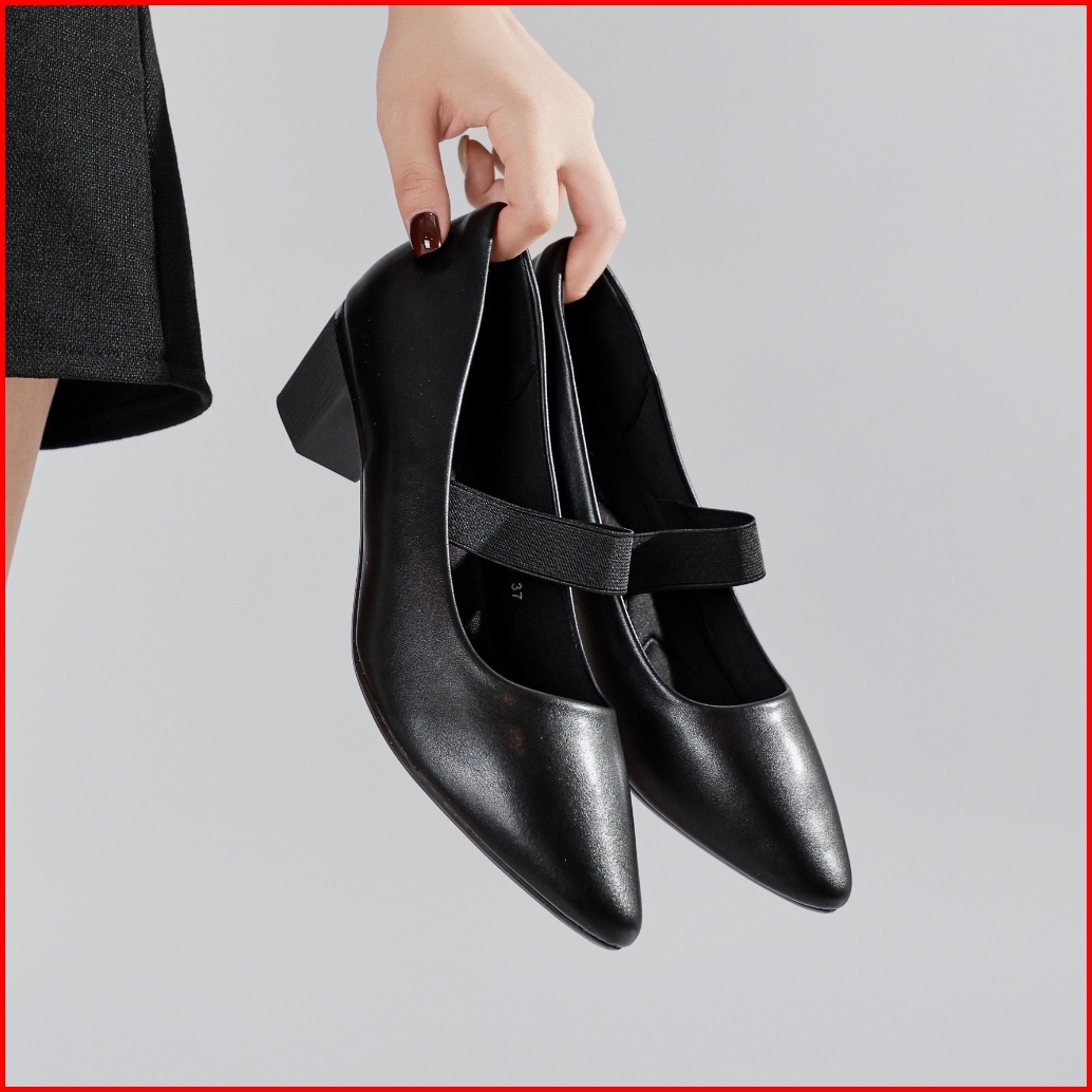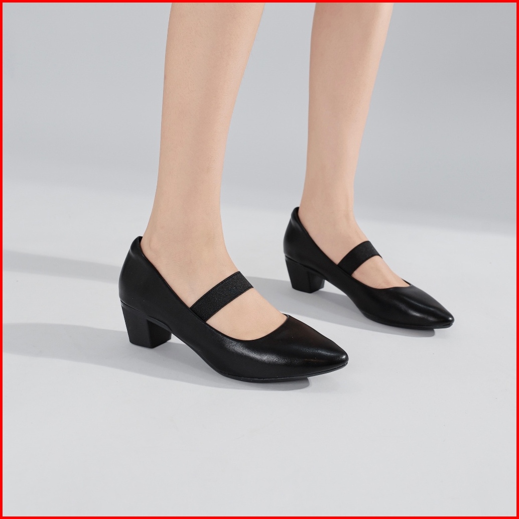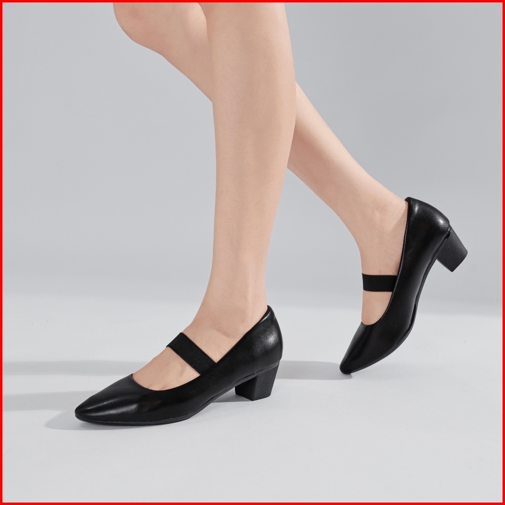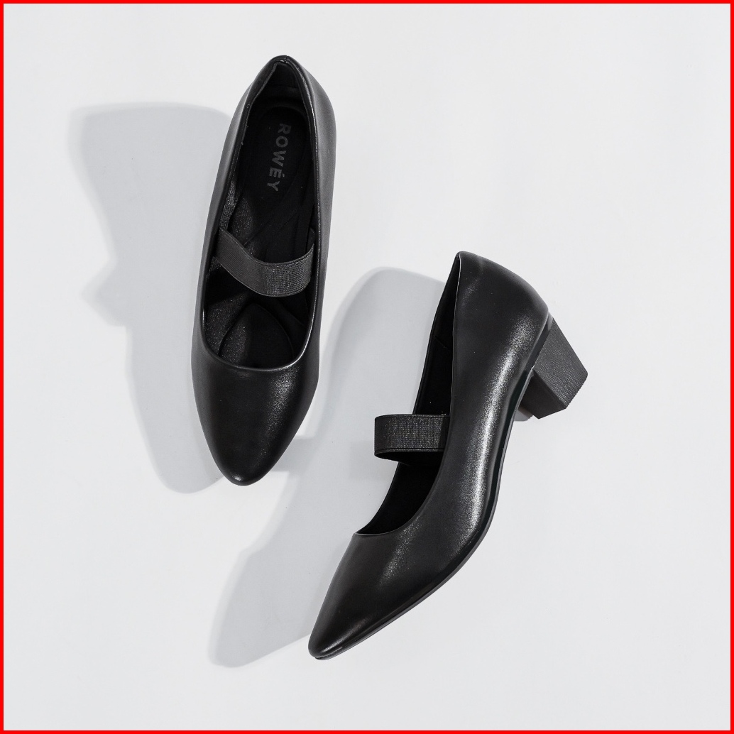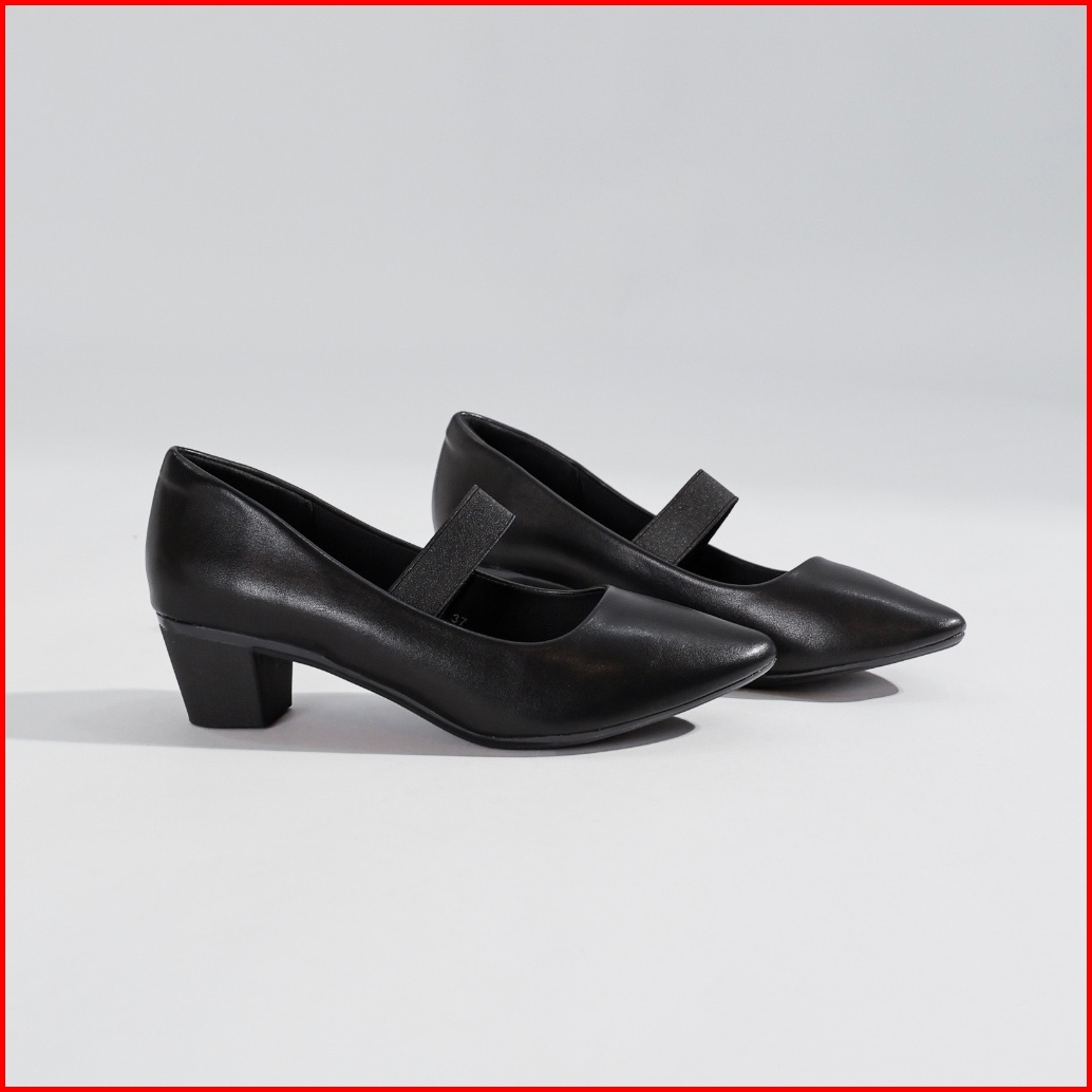 Rowey Sepatu Wanita Hitam Heels 5cm Sepatu Pansus Meiji